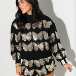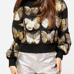 Black & Gold Sequin Butterfly Mockneck Sweatshirt | Queen Of Sparkles