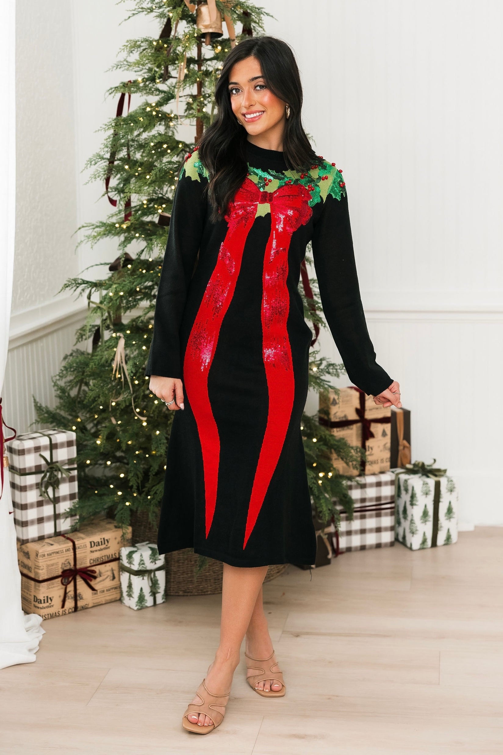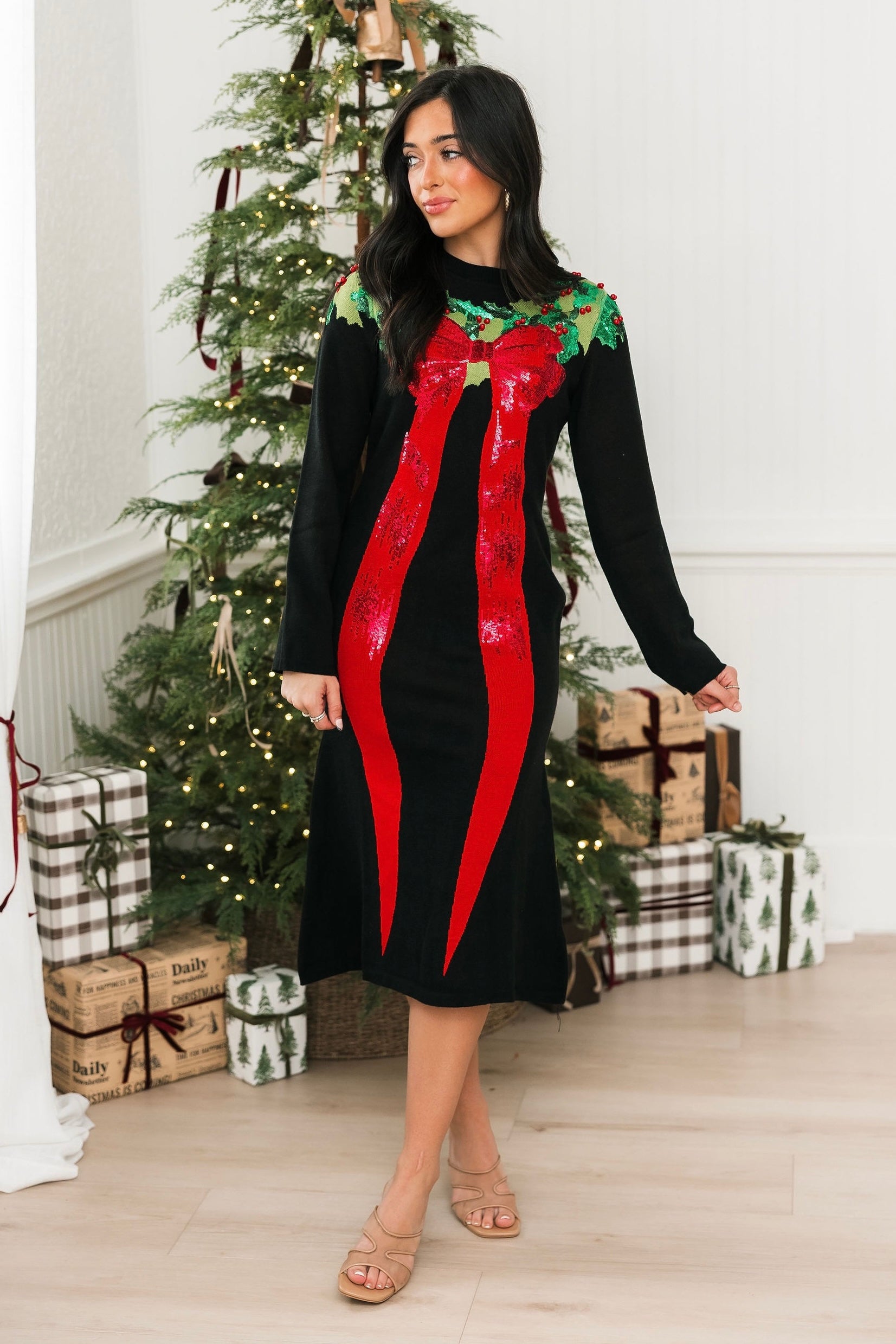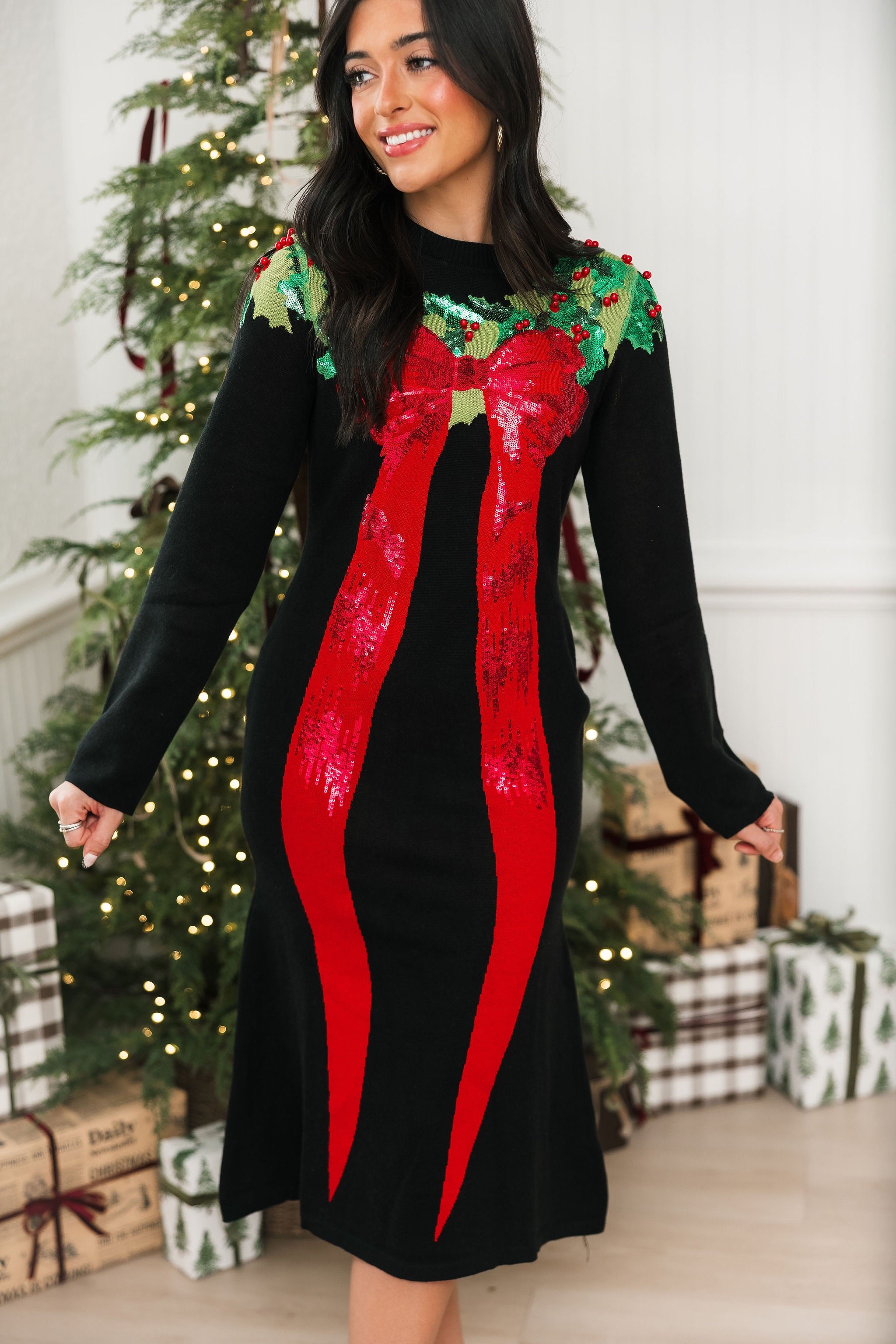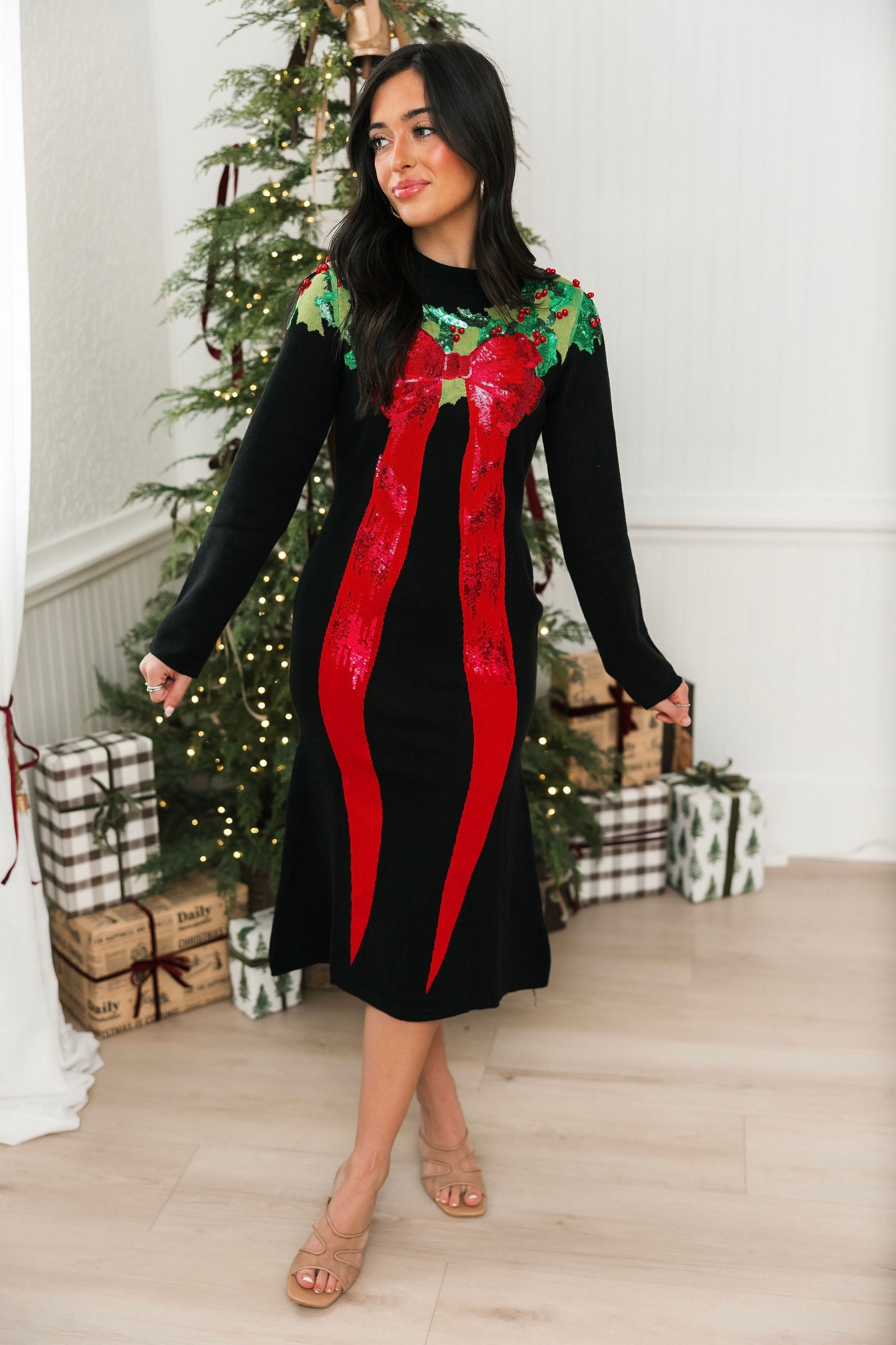 Sequin Wreath With Bow Knit Midi Dress | Queen Of Sparkles