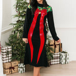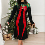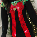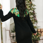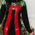 Queen Of Sparkles Black, Green & Red Sequin Wreath With Bow Knit Midi Dress