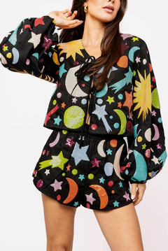 - Why We ❤ It: Comfy meets cosmic—these shorts feature a bold galaxy print and a relaxed fit, making them perfect for lounging or pairing with your favorite festival-ready tops.