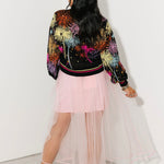 Queen Of Sparkles Black Multi Rainbow Firework Button Up Cardigan