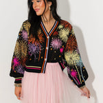 Black Multi Rainbow Firework Button Up Cardigan | Queen Of Sparkles
