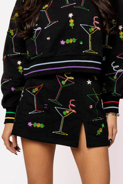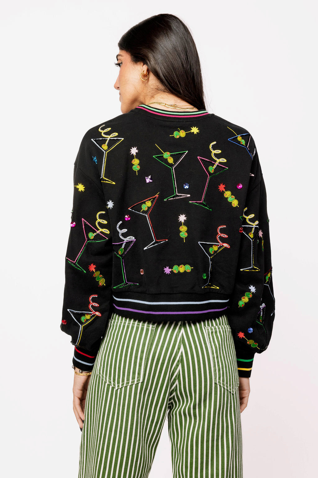 Black Multi Rainbow Trim Martini Sweatshirt | Queen Of Sparkles