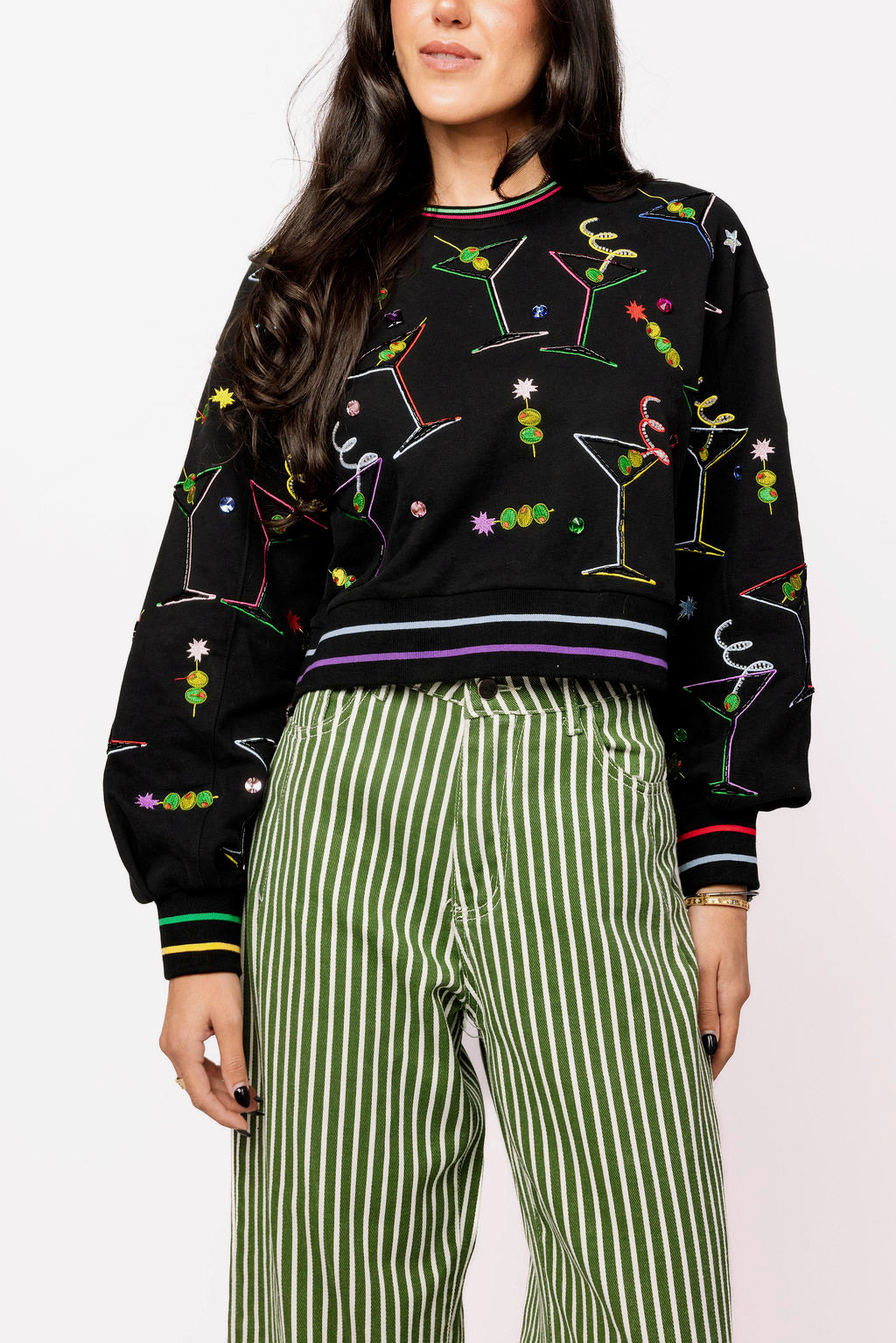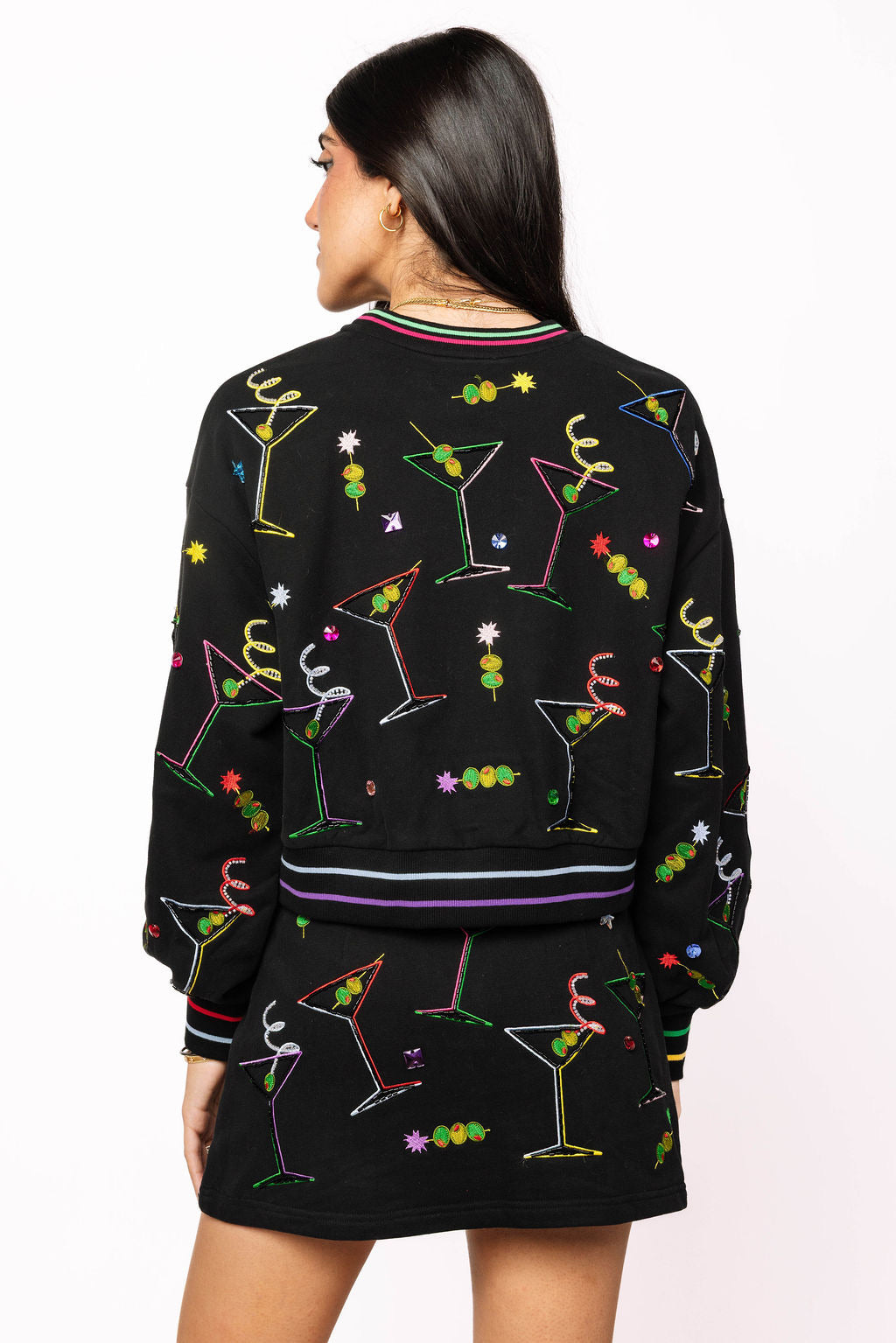 - Why We ❤ It: Sparkle meets cozy—this playful sweatshirt is finished with rainbow trim and shimmering martini glass graphics, making it the perfect mix of festive fun and comfort.
