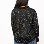 Shine bright in the Queen Of Sparkles Black Multi Rhinestone Cotton Button Up Collared Top. With a relaxed fit, classic collar, and colorful rhinestone embellishments, this top effortlessly combines comfort and glam. Pair it with jeans for a standout casual look or dress it up with a skirt or trousers for parties and special events. Perfect for anyone who loves to sparkle.