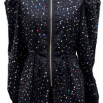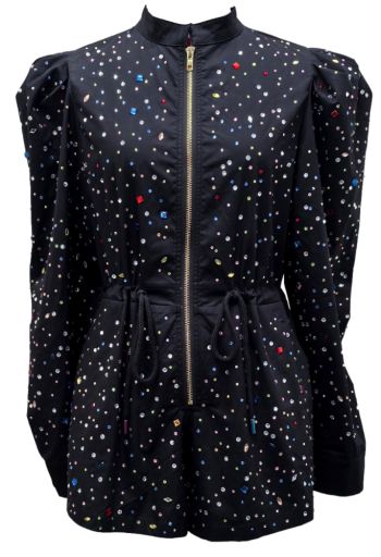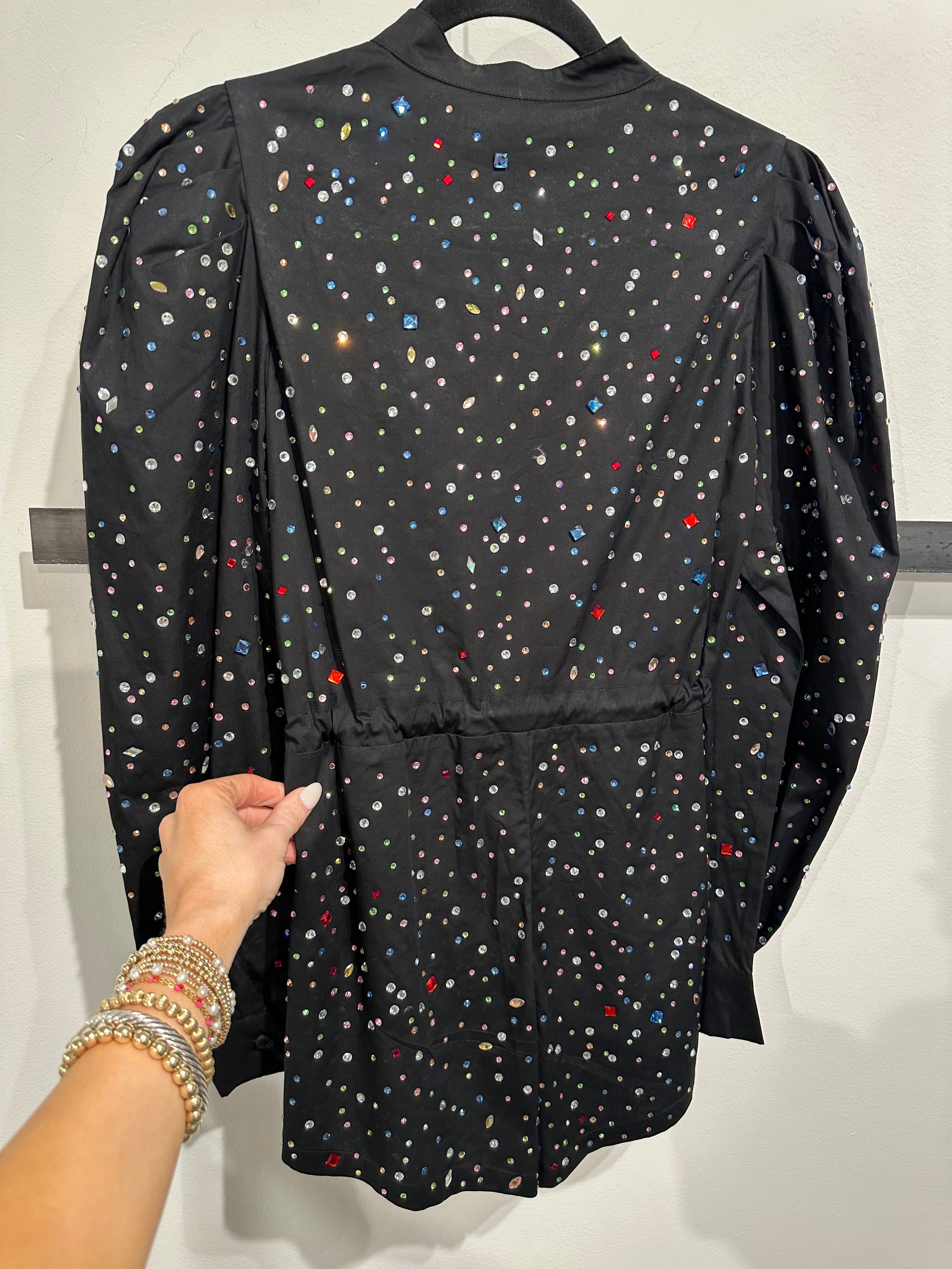 Queen Of Sparkles Black Multi Scattered Rhinestone Long Sleeve Romper