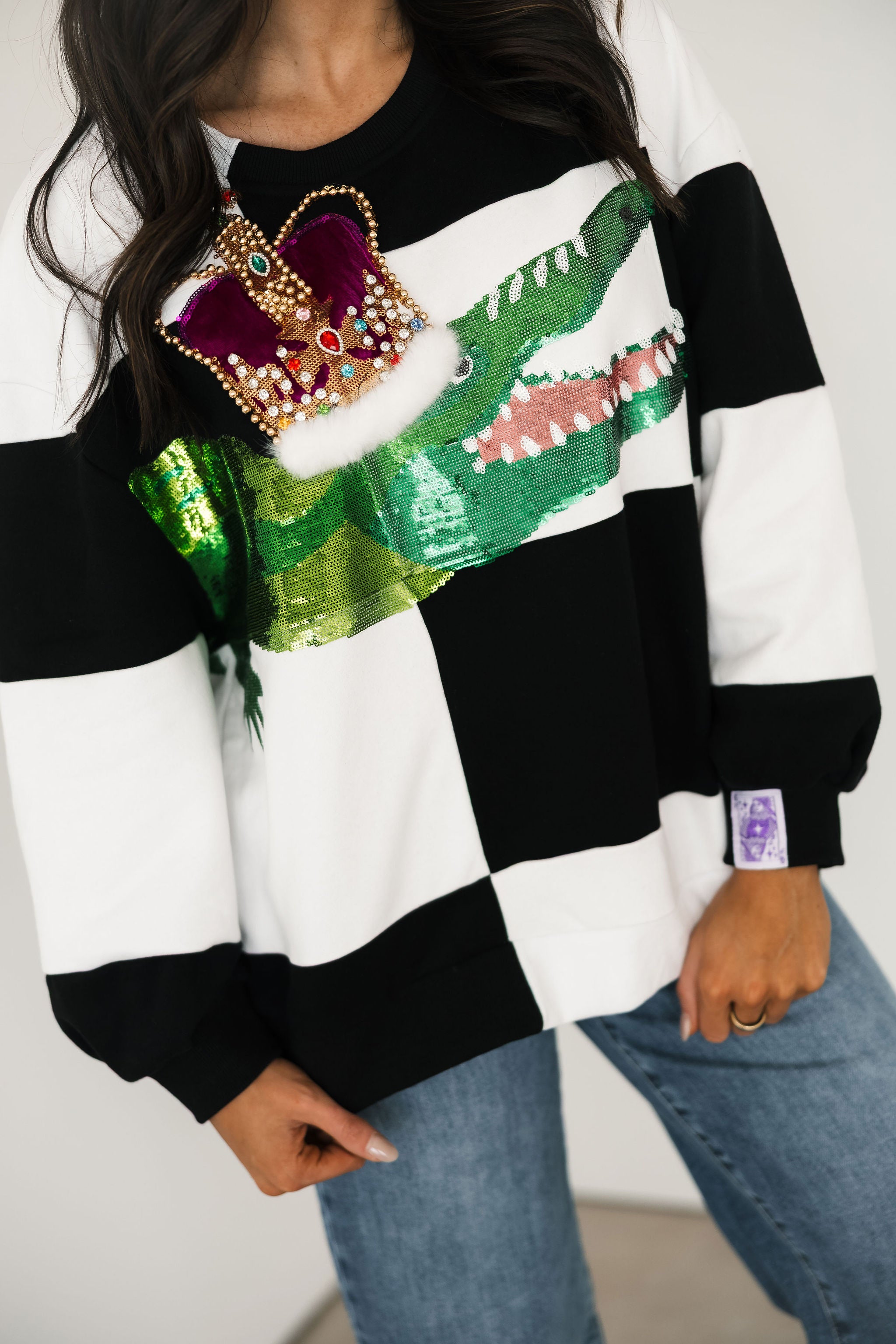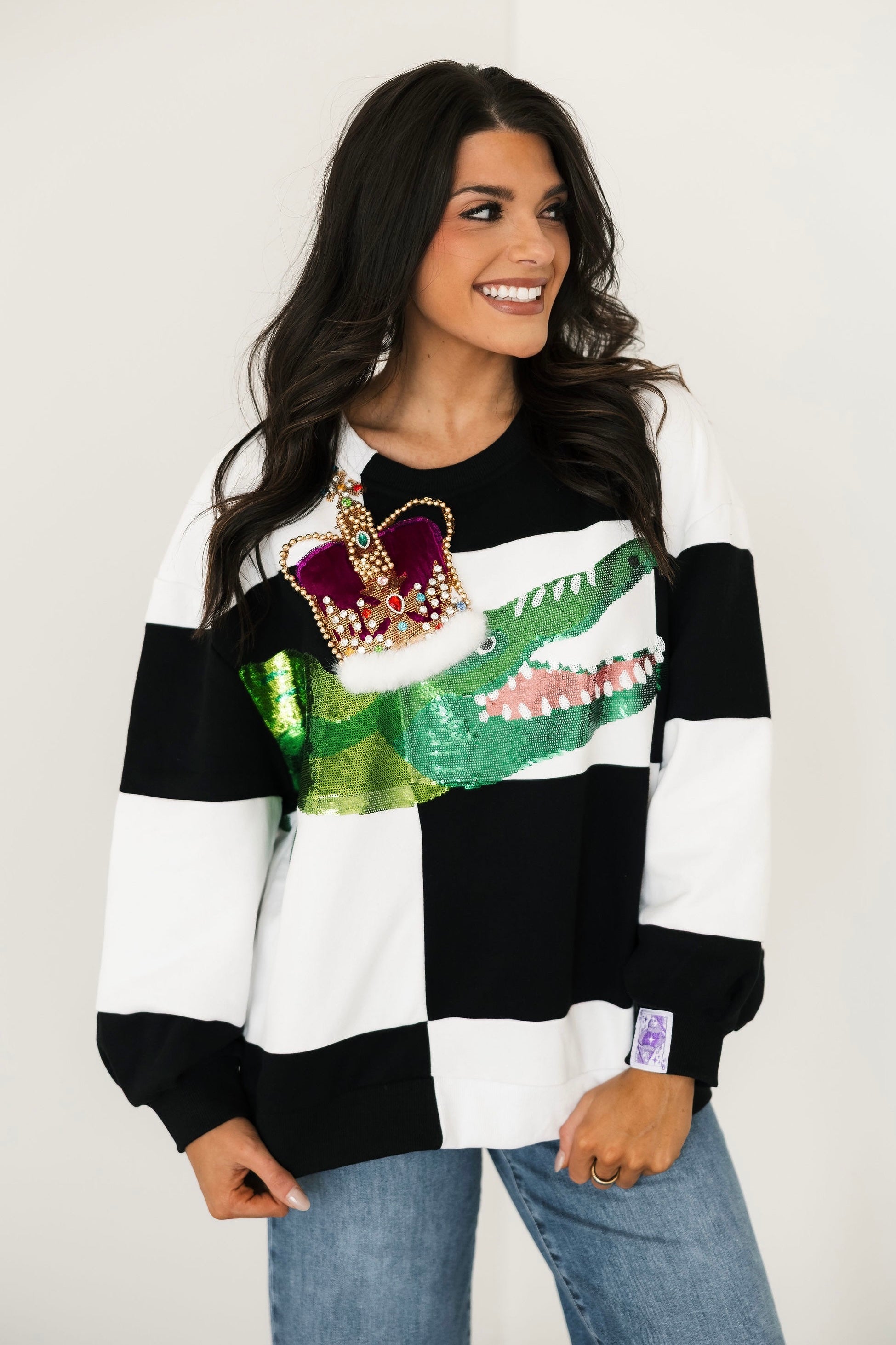 Queen Of Sparkles Black & White Checkered Alligator Queen Sweatshirt