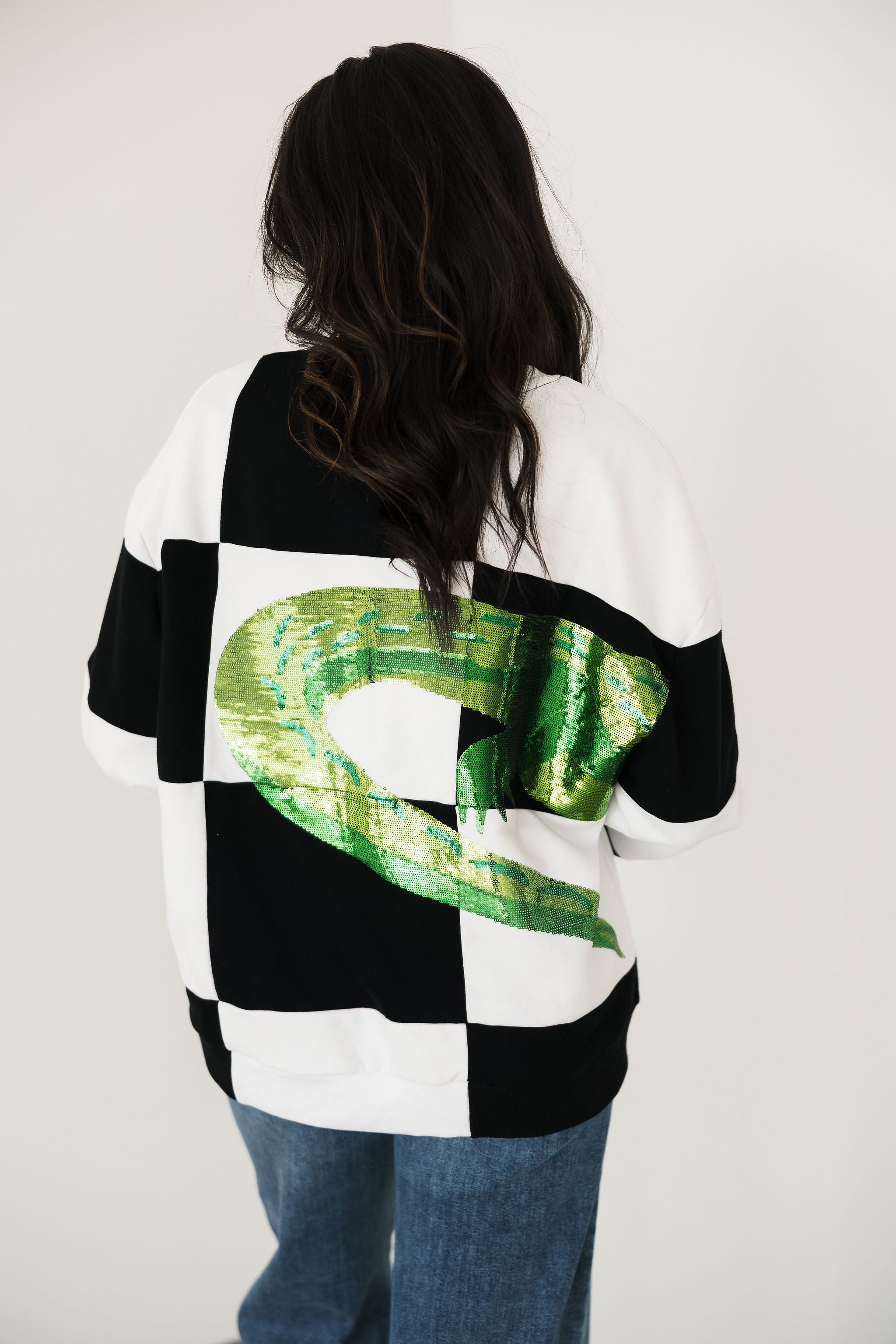 Black & White Checkered Alligator Queen Sweatshirt | Queen Of Sparkles