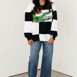 This cozy crewneck sweatshirt features classic long sleeves and a relaxed fit, making it perfect for everyday wear. The black-and-white checks add a trendy touch, while the sparkling alligator detail brings signature Queen of Sparkles flair. Harli is wearing an Small.
