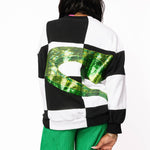 This cozy crewneck sweatshirt features classic long sleeves and a relaxed fit, making it perfect for everyday wear. The black-and-white checks add a trendy touch, while the sparkling alligator detail brings signature Queen of Sparkles flair.