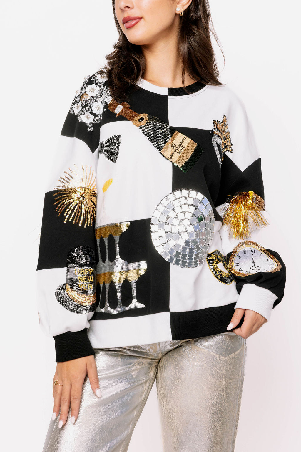 Black & White Checkered NYE Icon Sweatshirt | Queen Of Sparkles