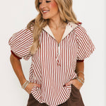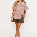 Effortless and elevated, the Blake Zip Up Top brings a fresh twist to your blouse collection. With its billowy fit, puff sleeves, and subtle striped texture, it drapes beautifully for a relaxed yet refined look. The quarter-zip neckline adds just the right touch of modern detail—perfect for styling with trousers or with denim. Lexi is wearing a small.