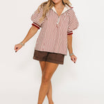 Blake Zip Up Top In Brick