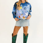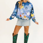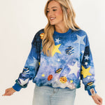 Sparkle brighter than the stars in the Blue Galaxy Sweatshirt. Designed with a relaxed fit and classic crewneck, this piece features a dreamy galaxy print that’s perfect for adding a cosmic touch to your back-to-school look. A Teacher Queen favorite that’s as comfy as it is fun. Lexi is wearing an XS.