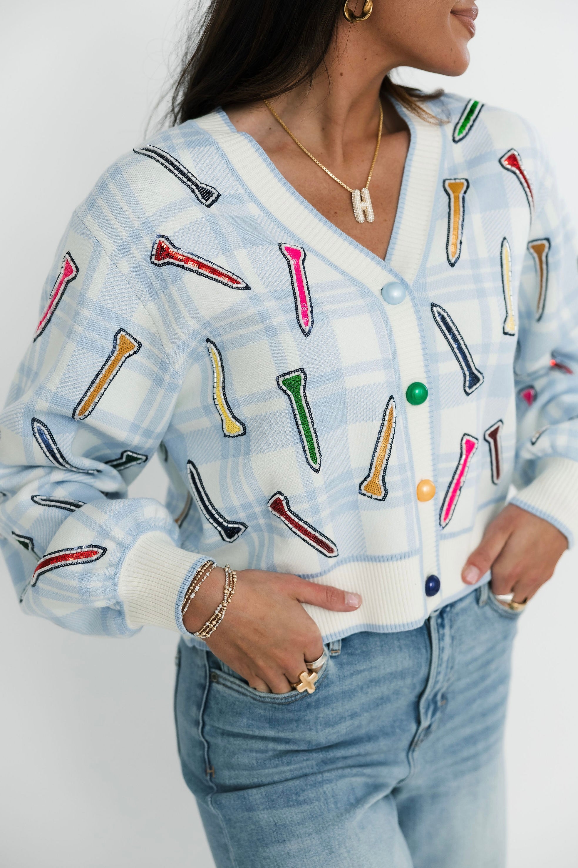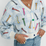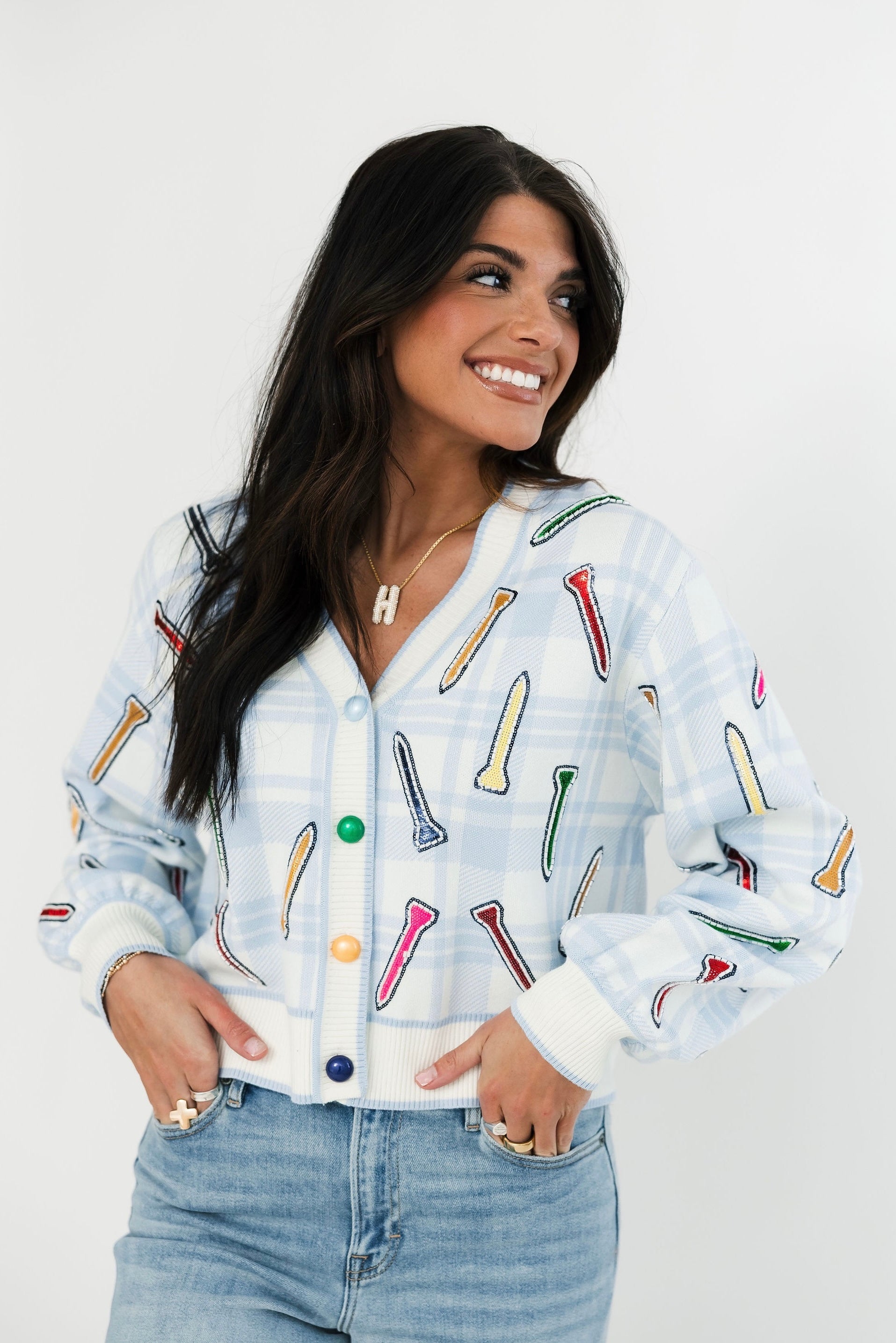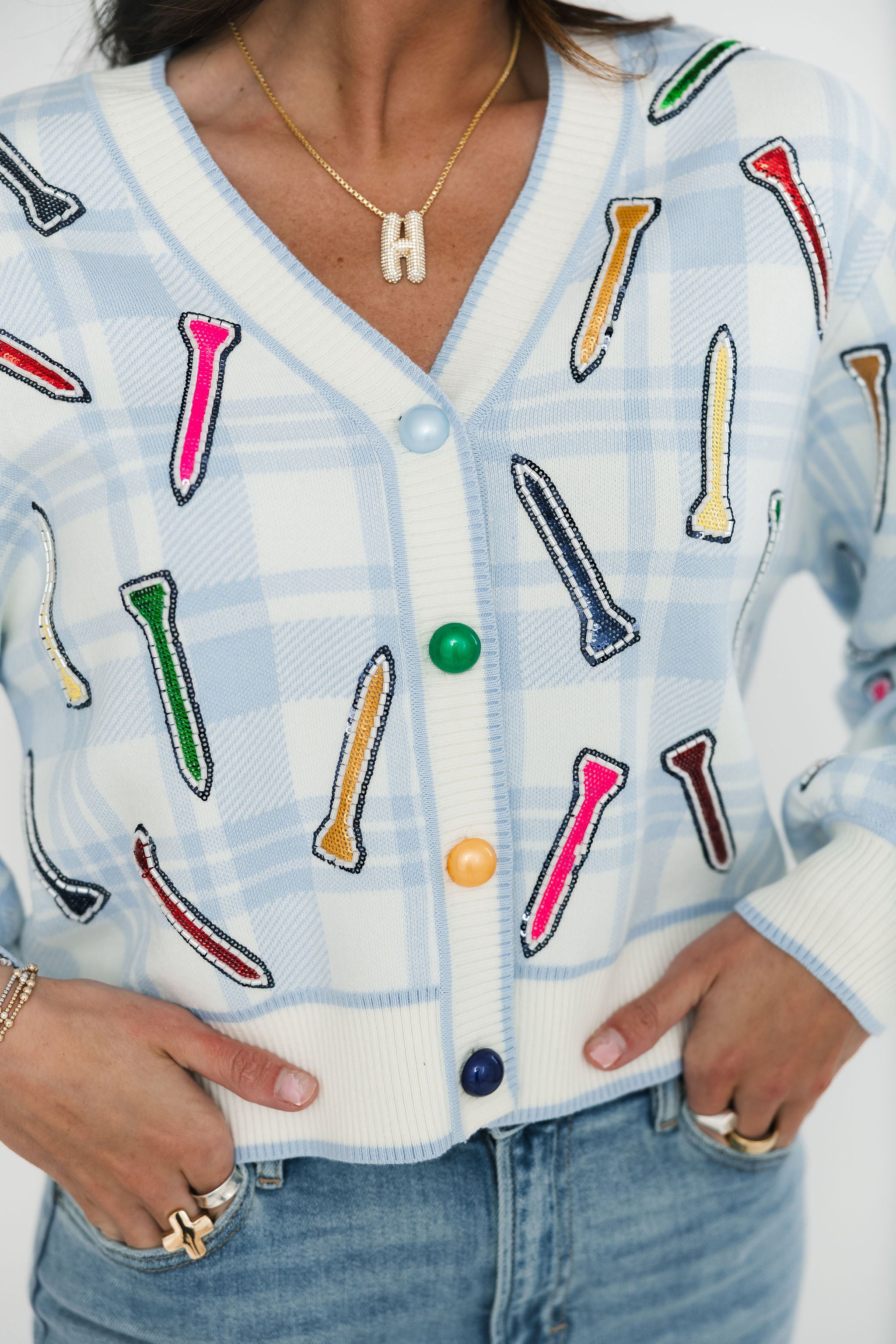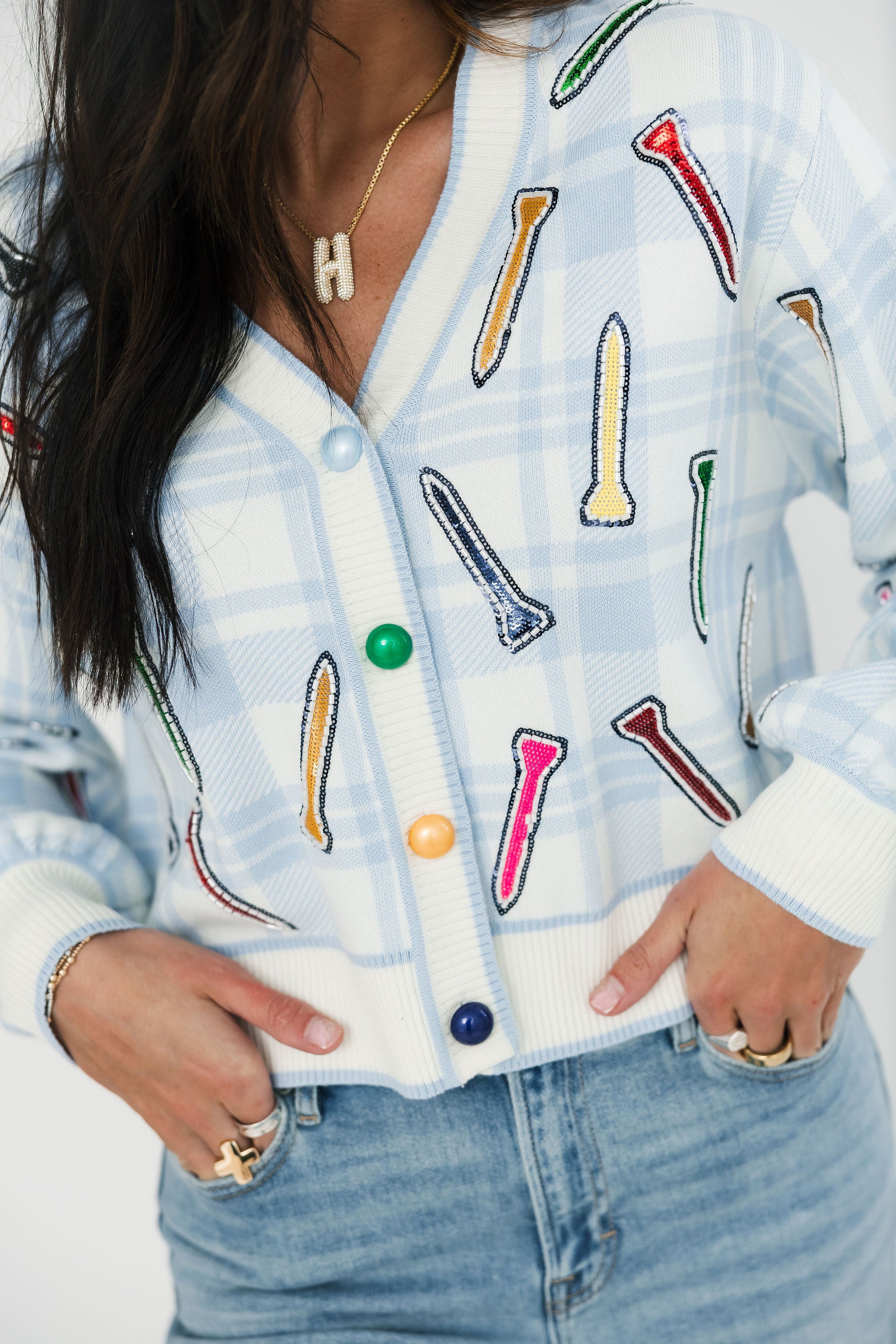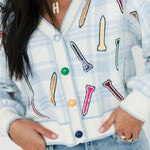 Blue & White Plaid Golf Tee Button Up Cardigan | Queen Of Sparkles