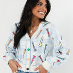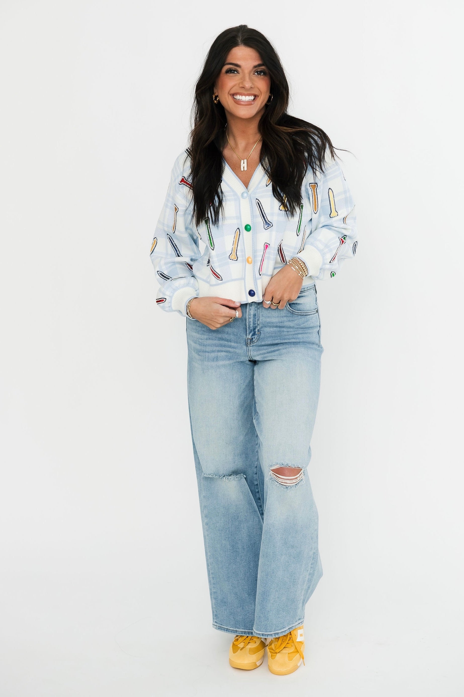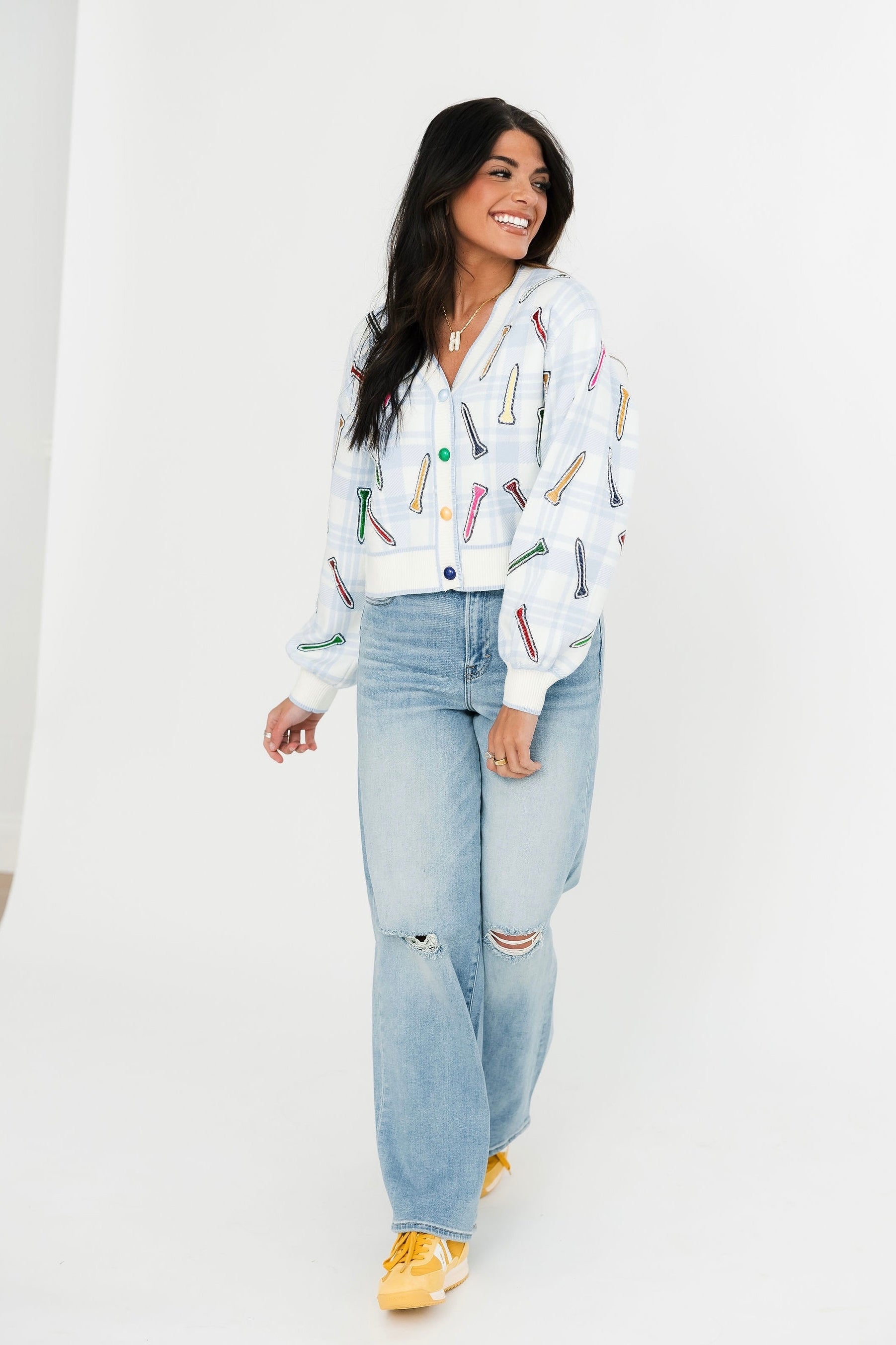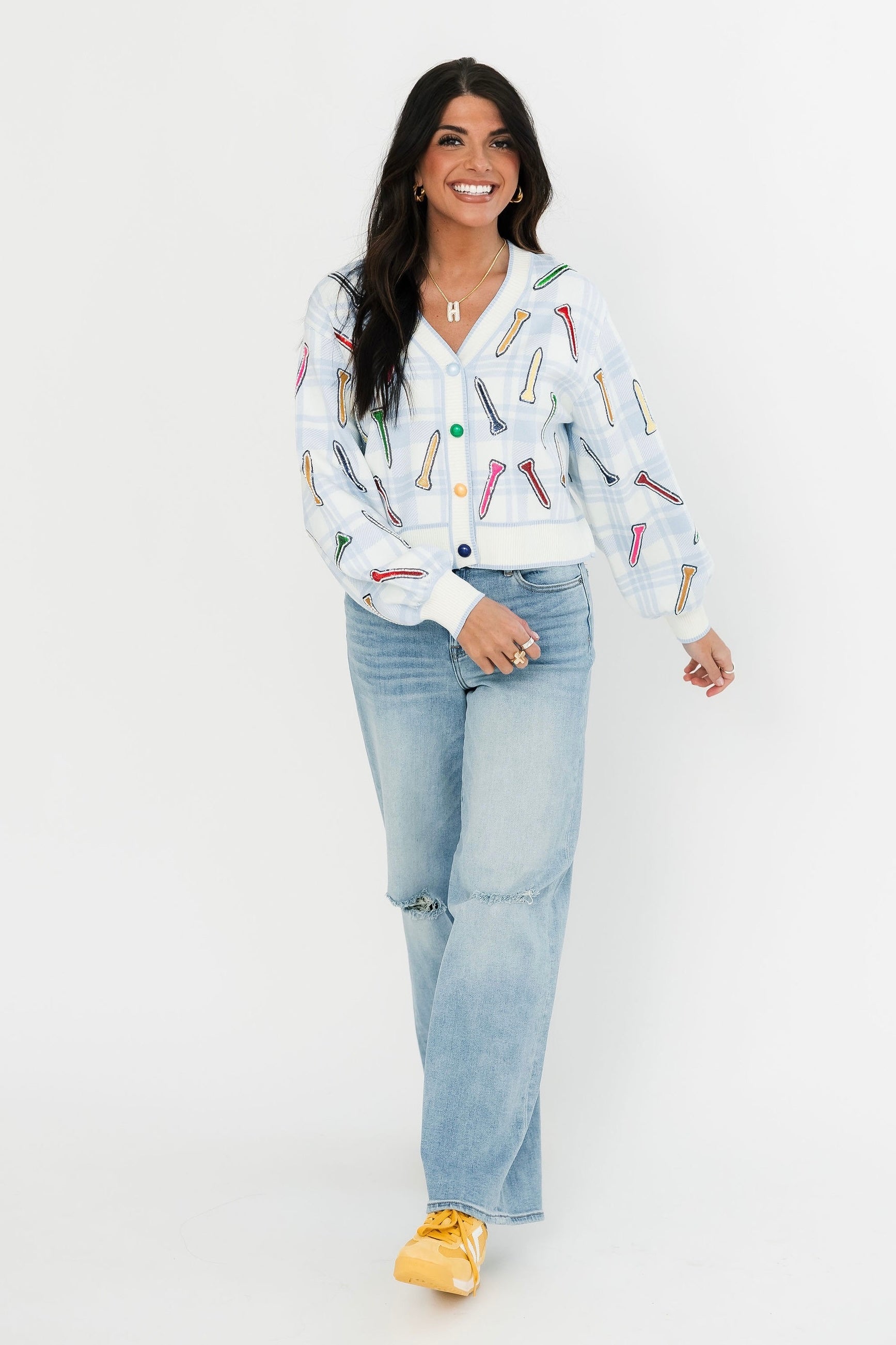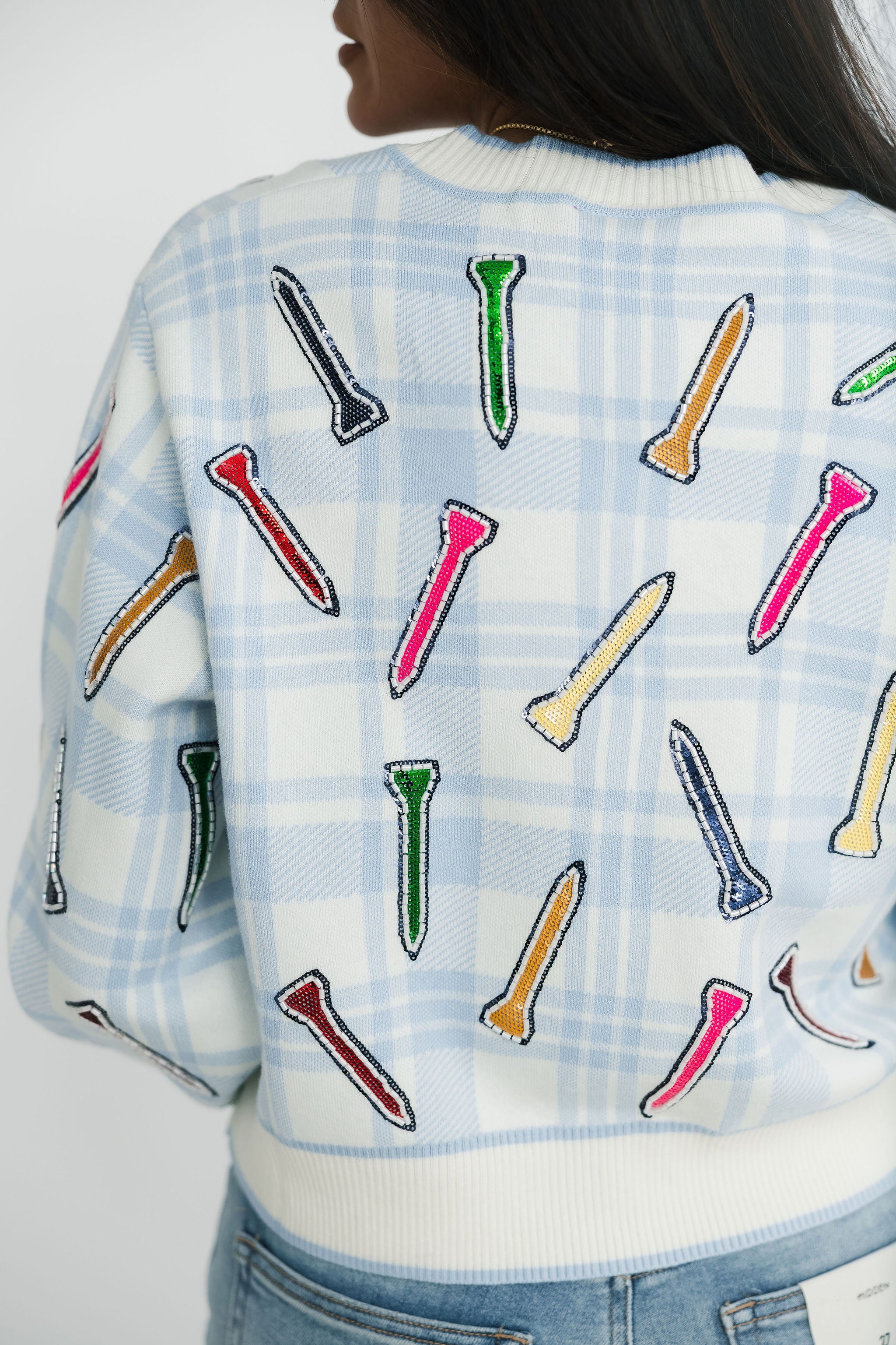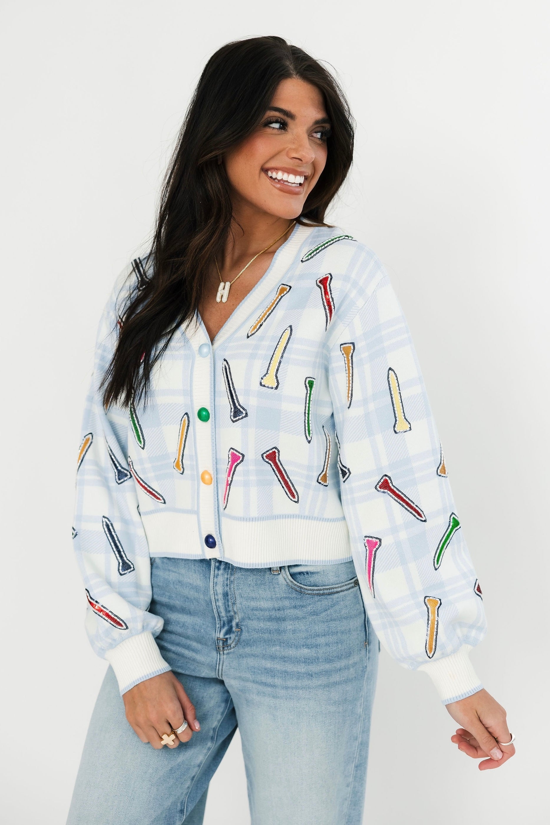 Blue & White Plaid Golf Tee Button Up Cardigan | Queen Of Sparkles