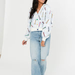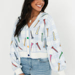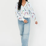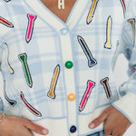 Queen Of Sparkles Blue & White Plaid Golf Tee Button Up Cardigan