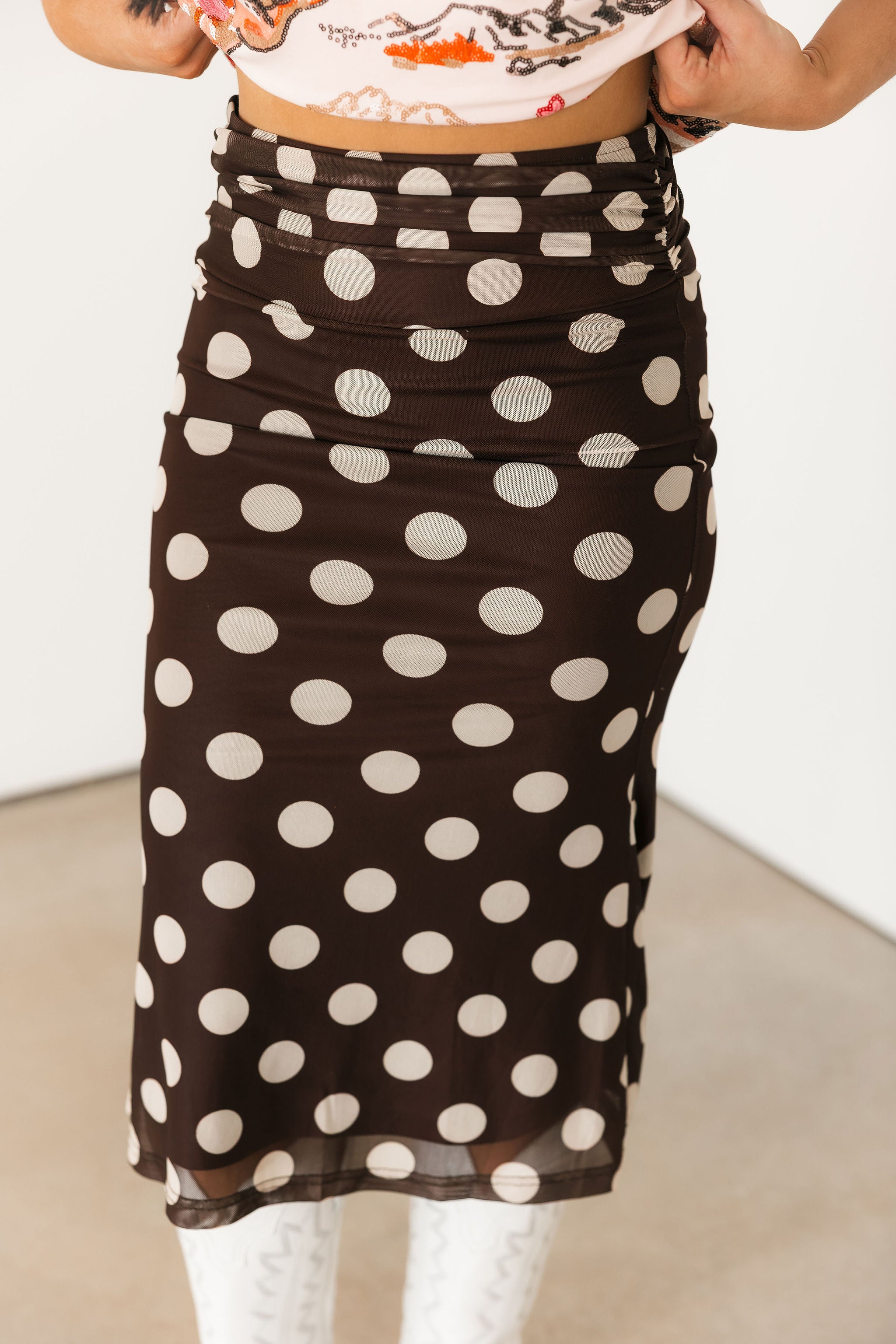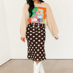 Bold Polka Dot Midi Skirt | Chocolate