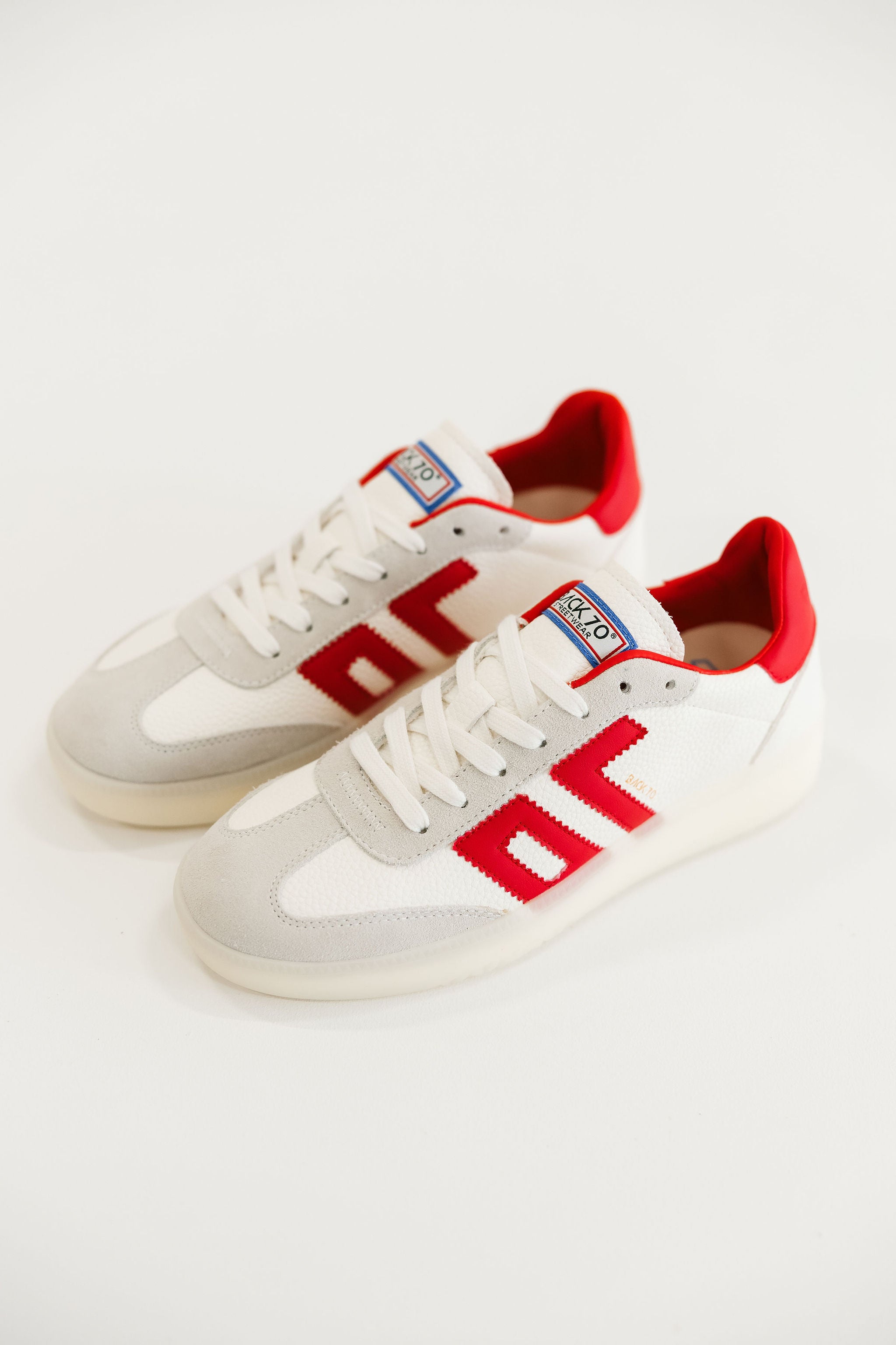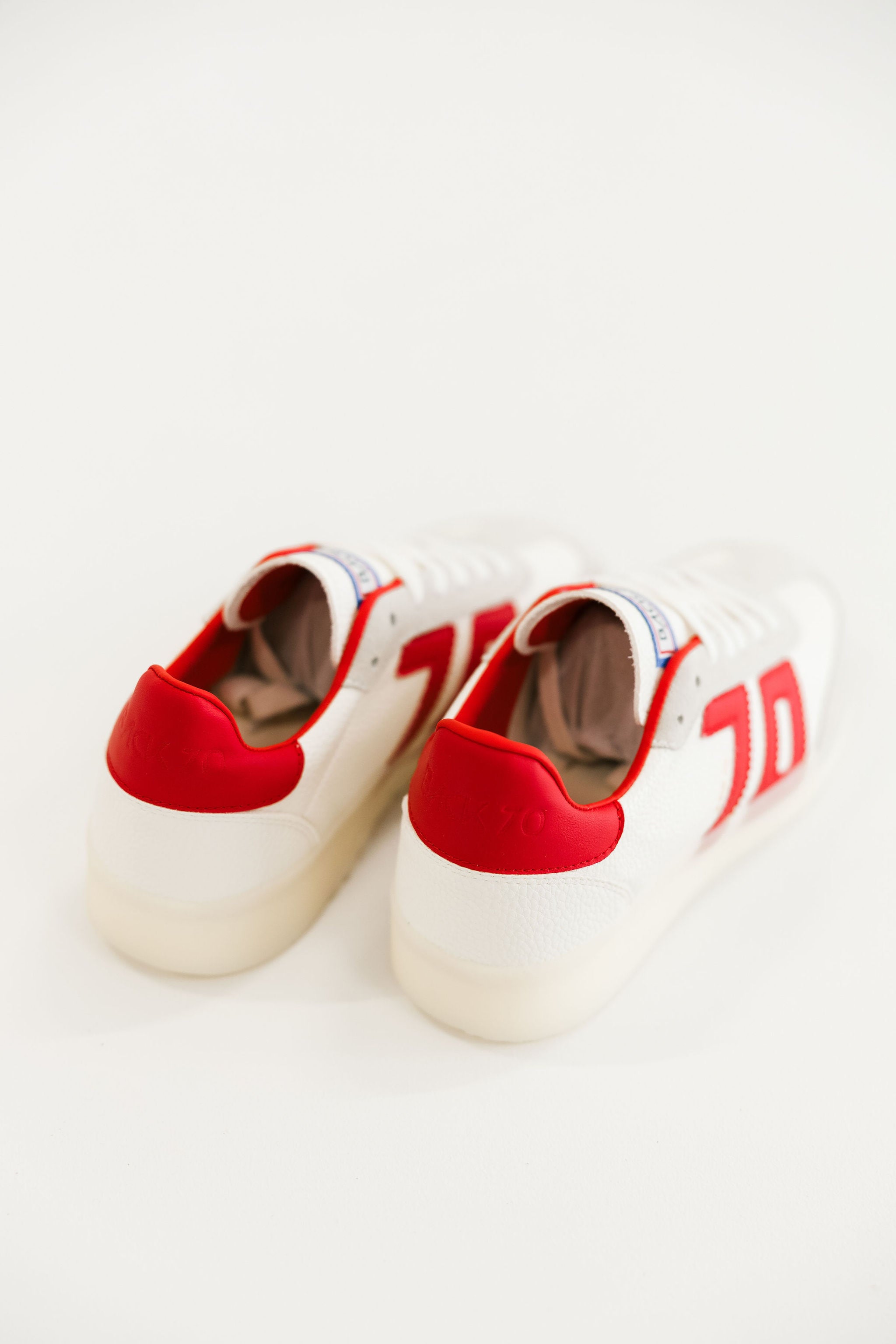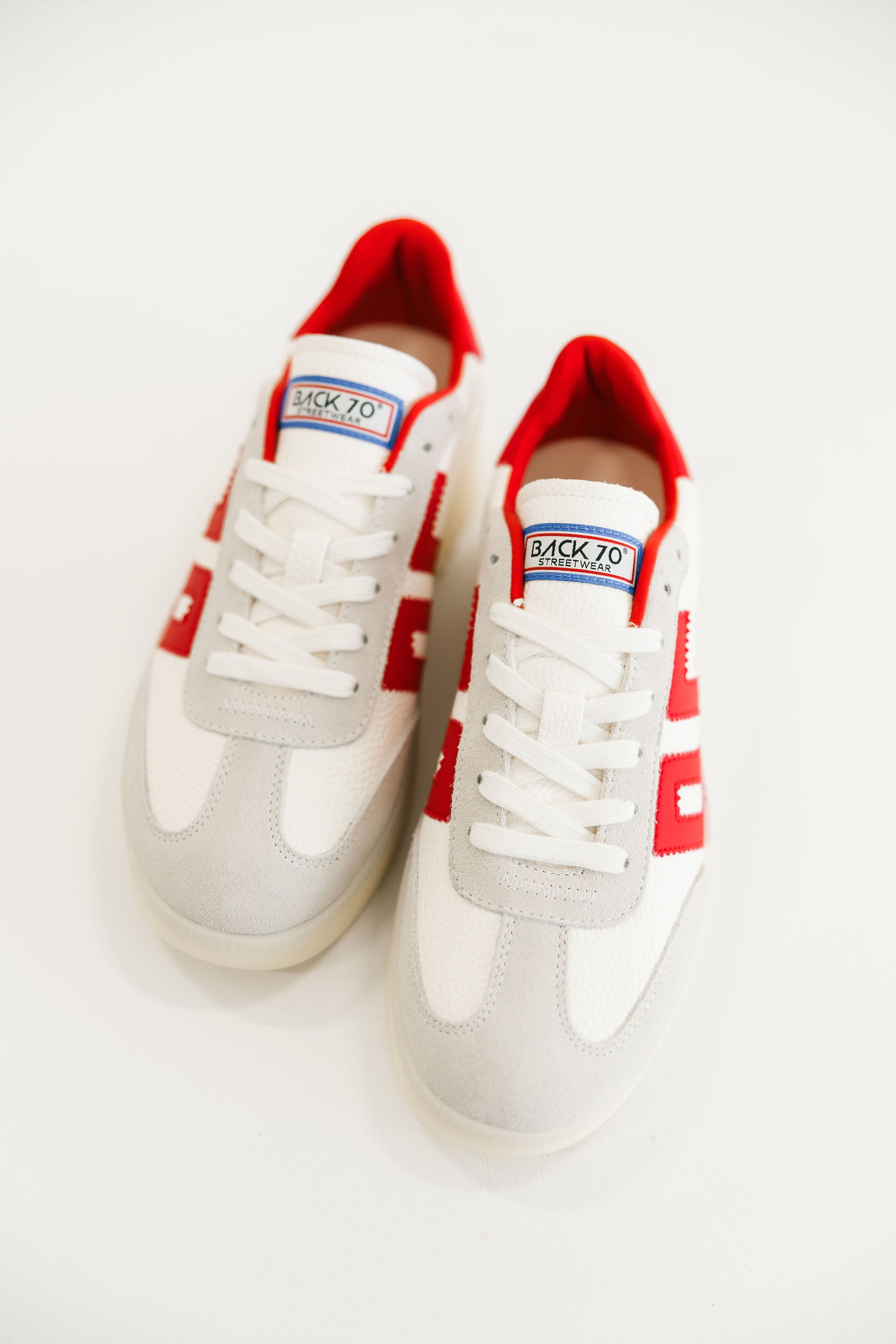Step up. These colorful platform sneakers feature Back 70's signature vintage style and bold '70' emblem infused with classic soccer-sneaker details. These essentials are hand crafted in small batches with soft, suede leather uppers and smooth leather details. The gummy rubber sole gives these kicks an updated aesthetic as well as a pretty sweet tread. Update your street style in Boston by Back 70.