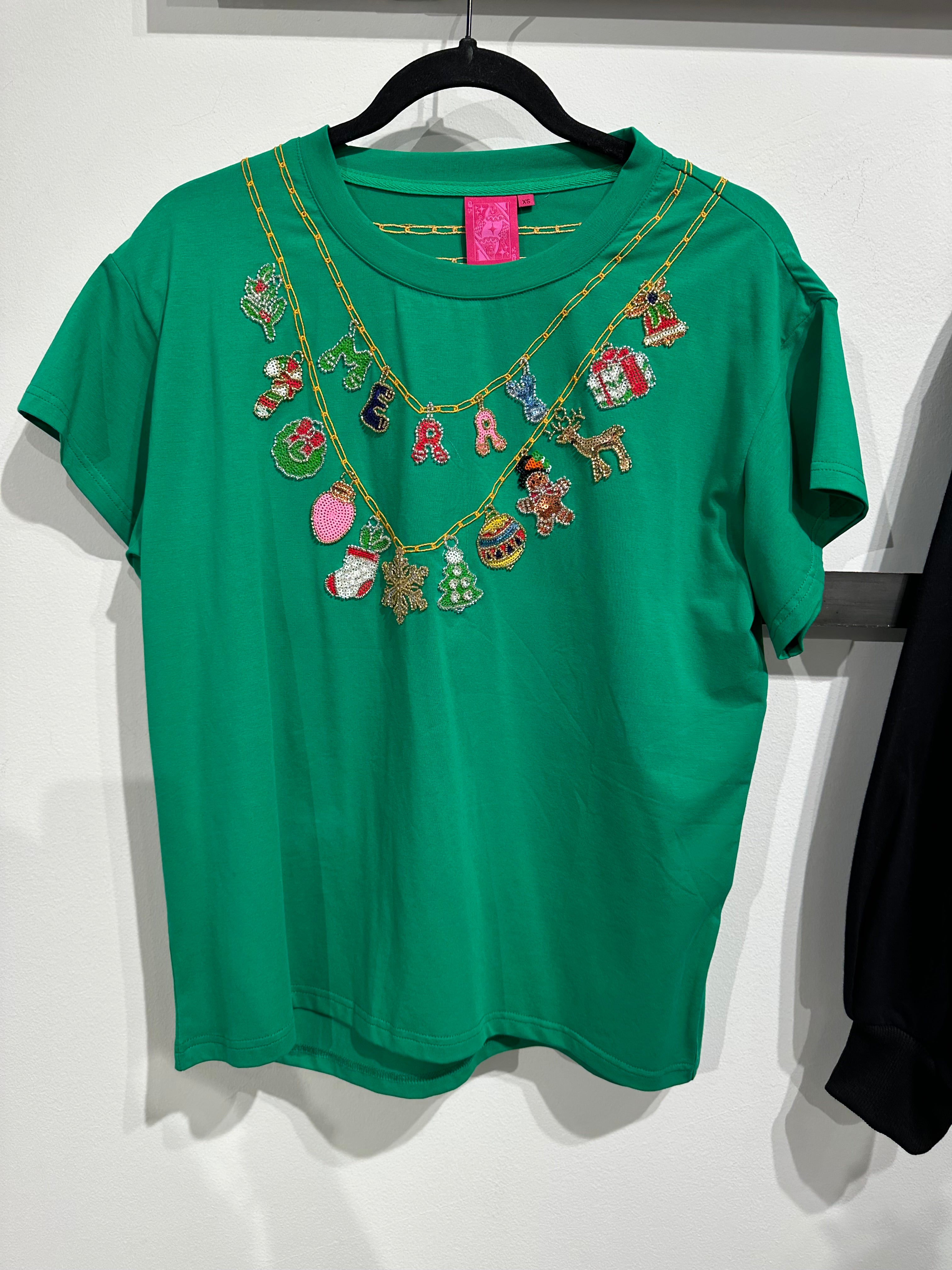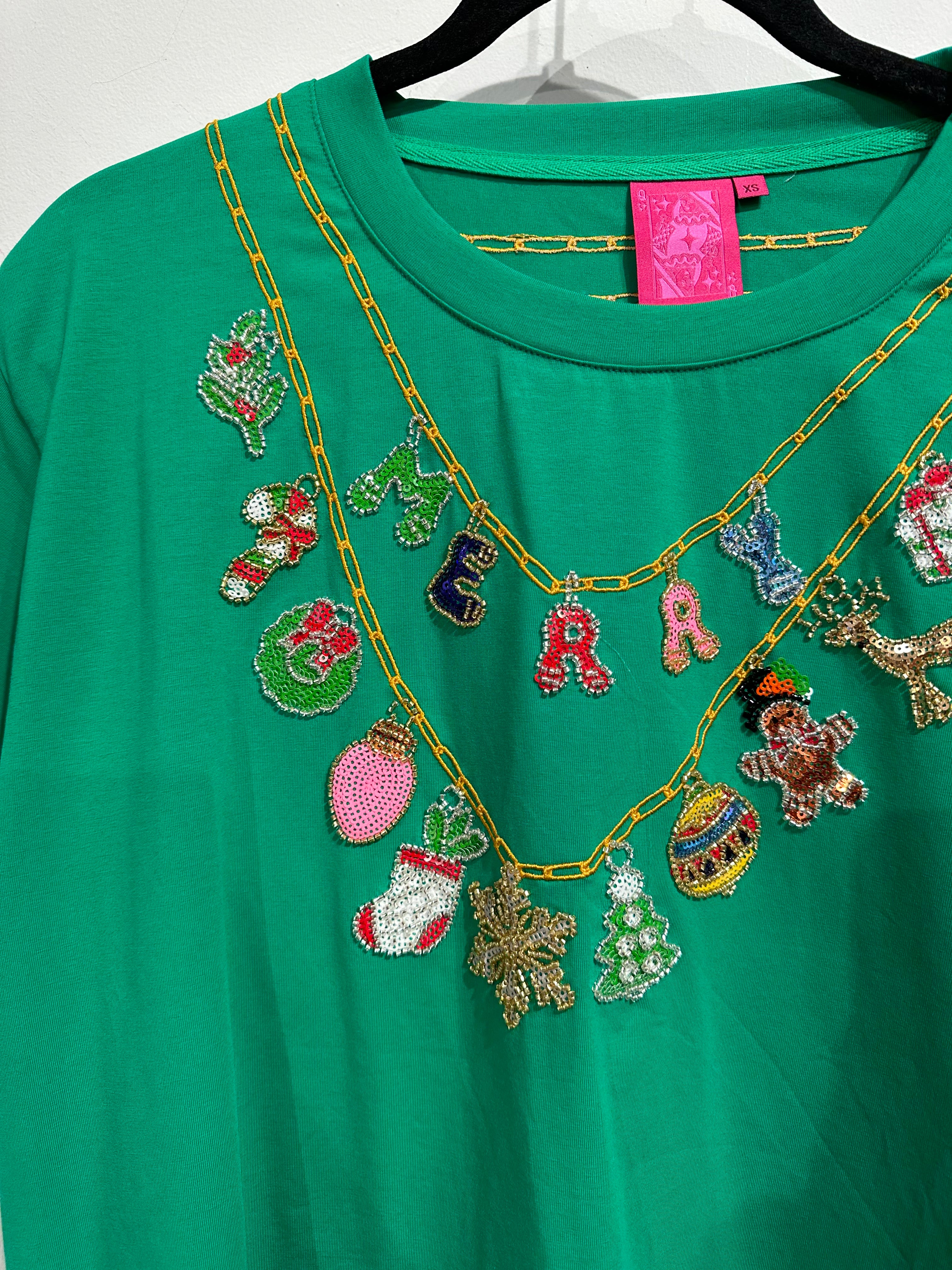Bright Green Christmas Necklace Tee | Queen Of Sparkles