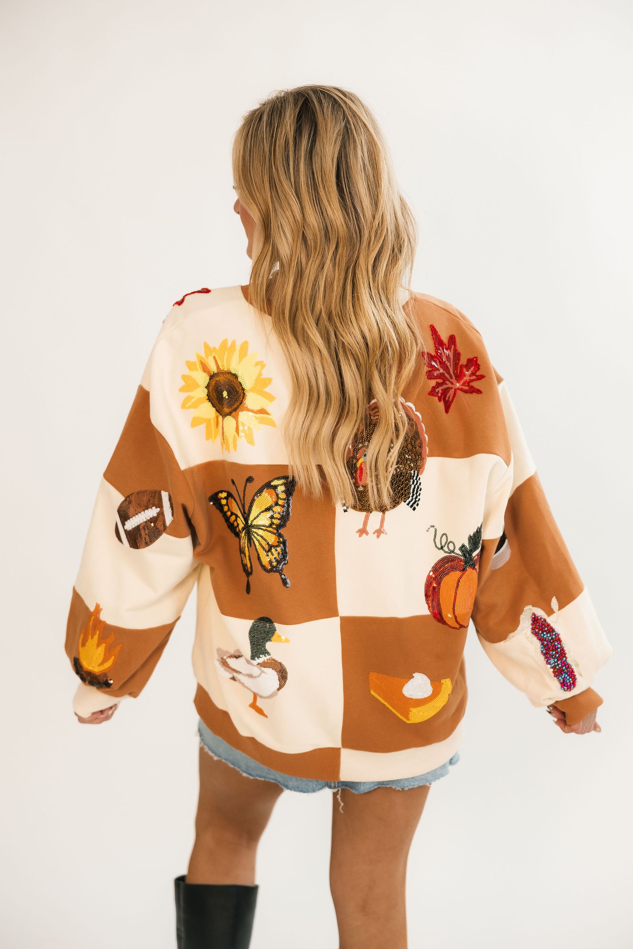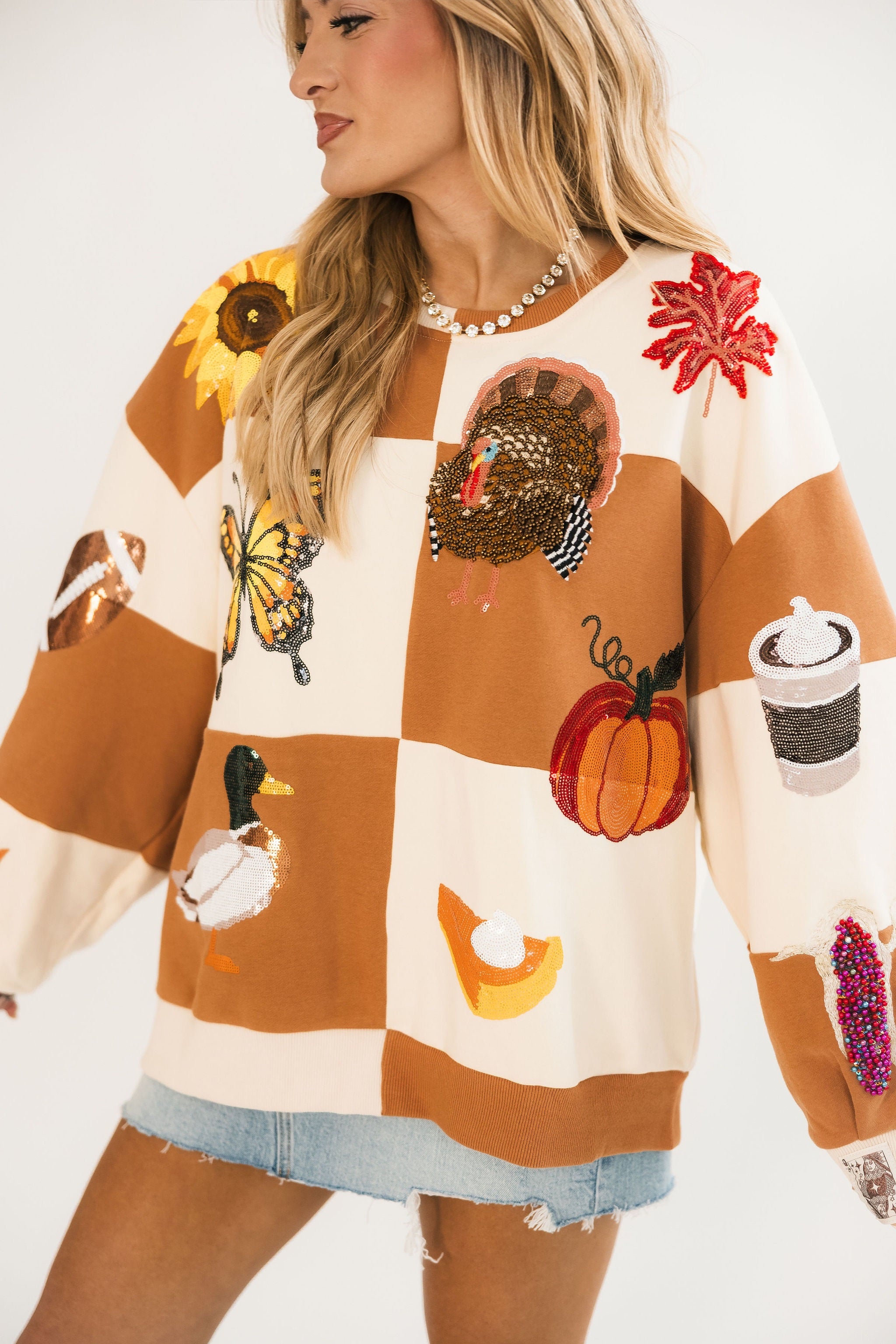 Brown & Ivory Checkered Fall Icon Sweatshirt | Queen Of Sparkles