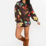 Queen Of Sparkles Brown & Neon Butterfly Short