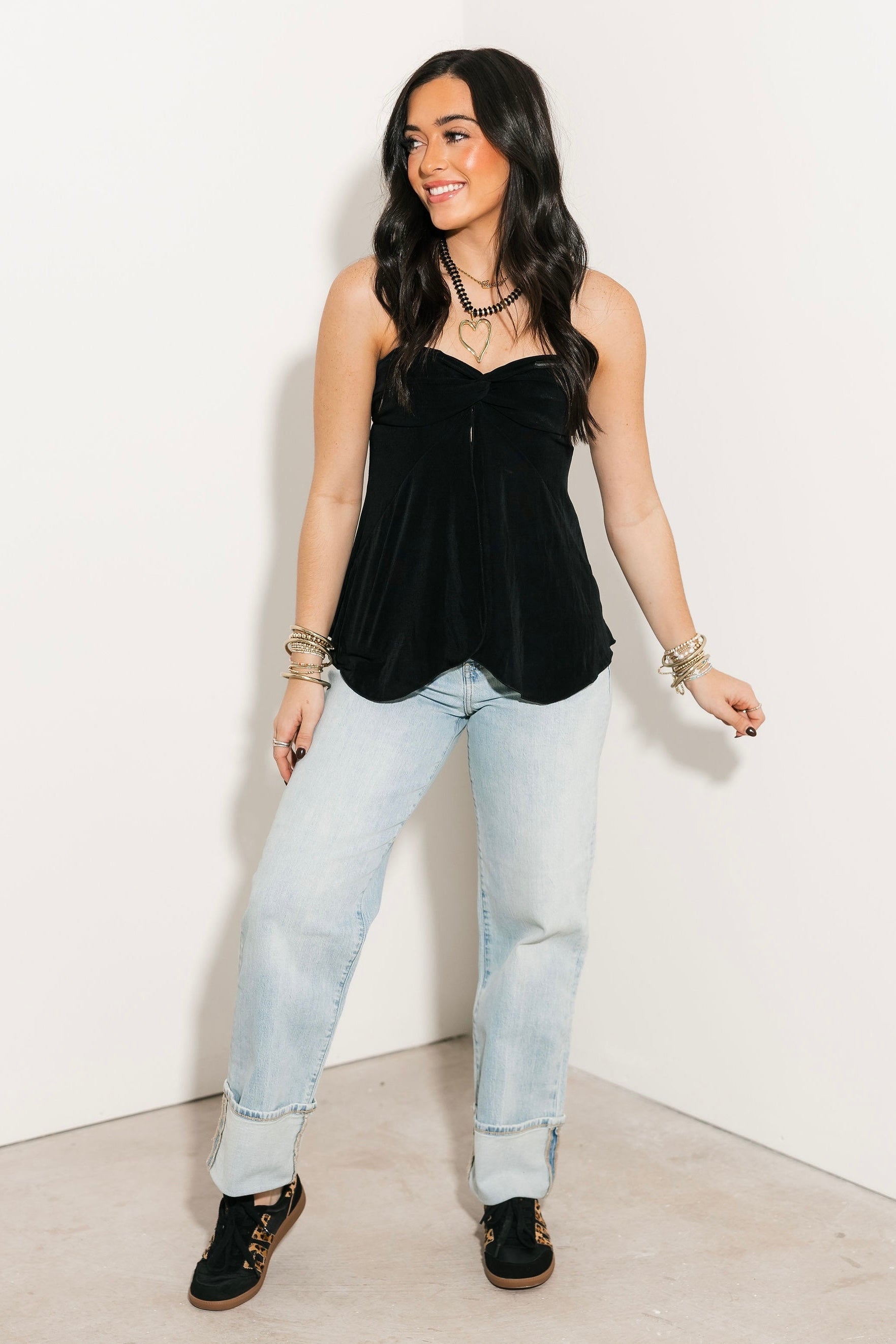 The Free People Call Me Later Tunic in Black features a fitted tube-top silhouette with a flattering sweetheart neckline. Sleek and versatile, it’s perfect for layering, dressing up, or creating an effortlessly stylish outfit for any occasion. Sage is wearing an xs.