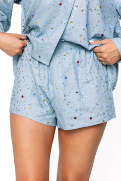 - Why We ❤ It: Classic chambray meets playful sparkle with rhinestones scattered all over.