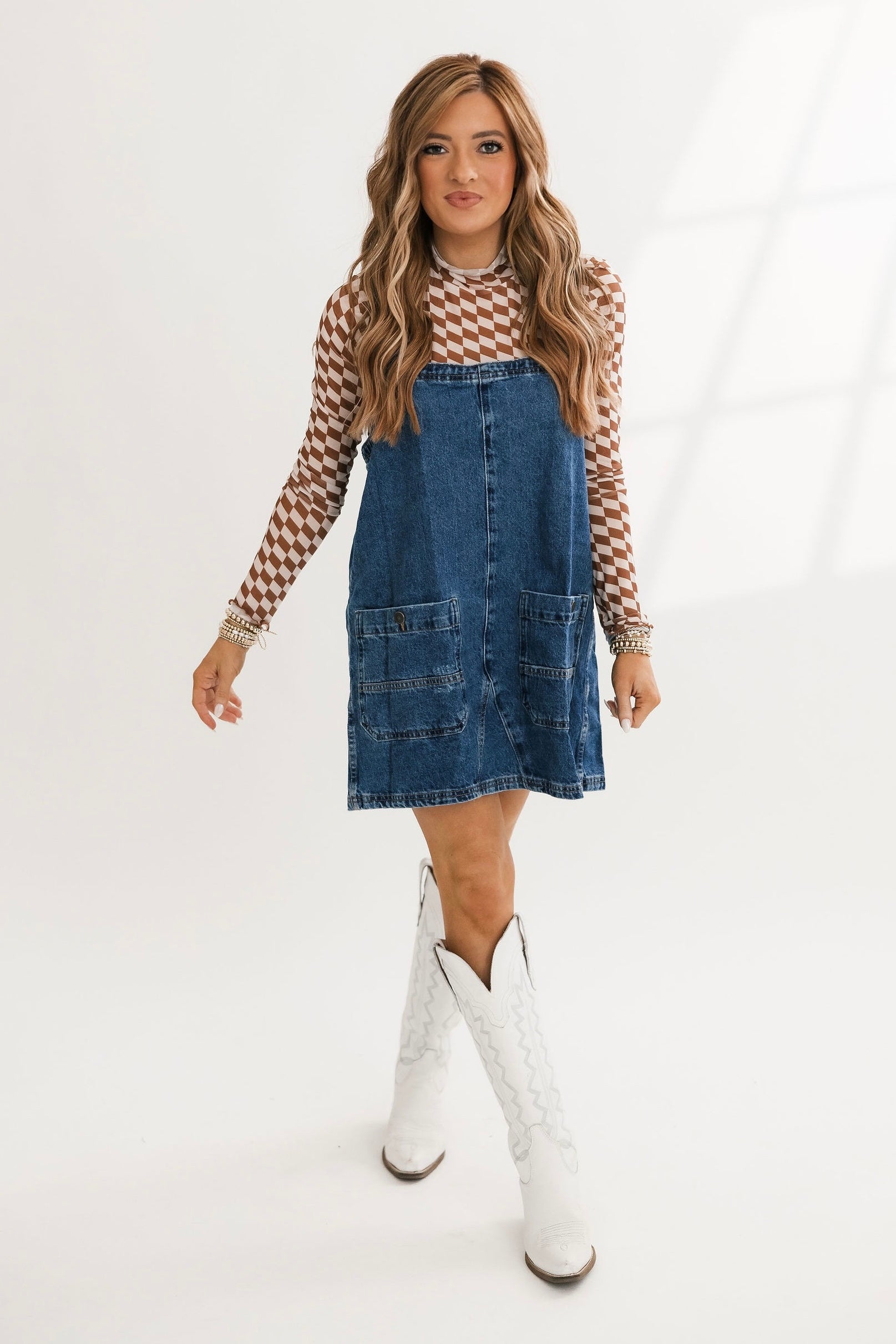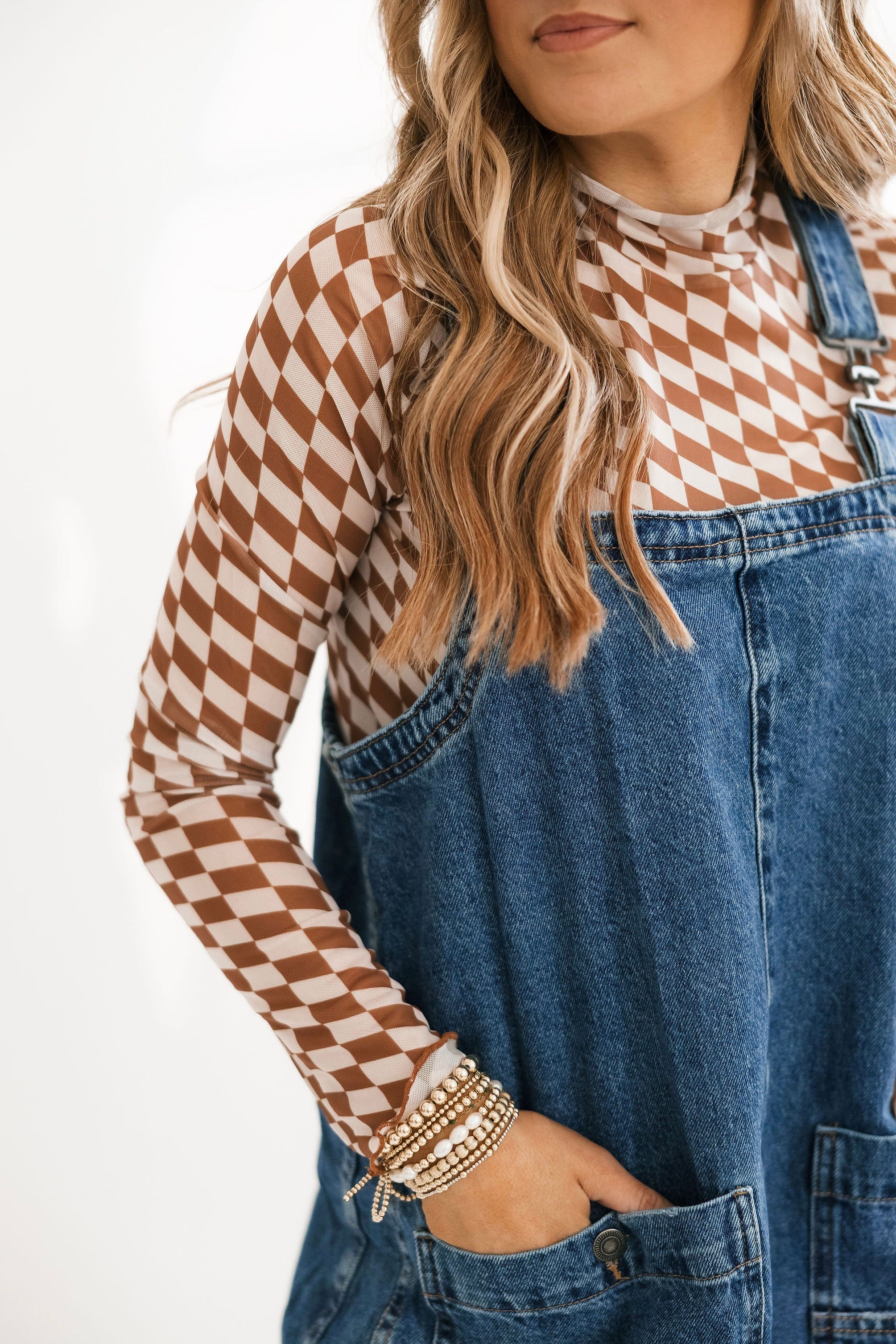 Chic and a little edgy—the Checkered Sheer Long Sleeve Top in Mocha is the perfect statement layer. With its mesh feel and bold pattern, it’s made to stand out whether you dress it up or down. Lexi is wearing a small.