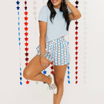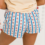 Sweet, cheeky, and made for summer—the Cherry Stripe Boxer Shorts in Red, White & Blue bring playful vibes with a cherry-striped print, button detail, and comfy elastic waist. Perfect for lounging loud and proud! 🍒🇺🇸💥 Lexi and sage are wearing a small.