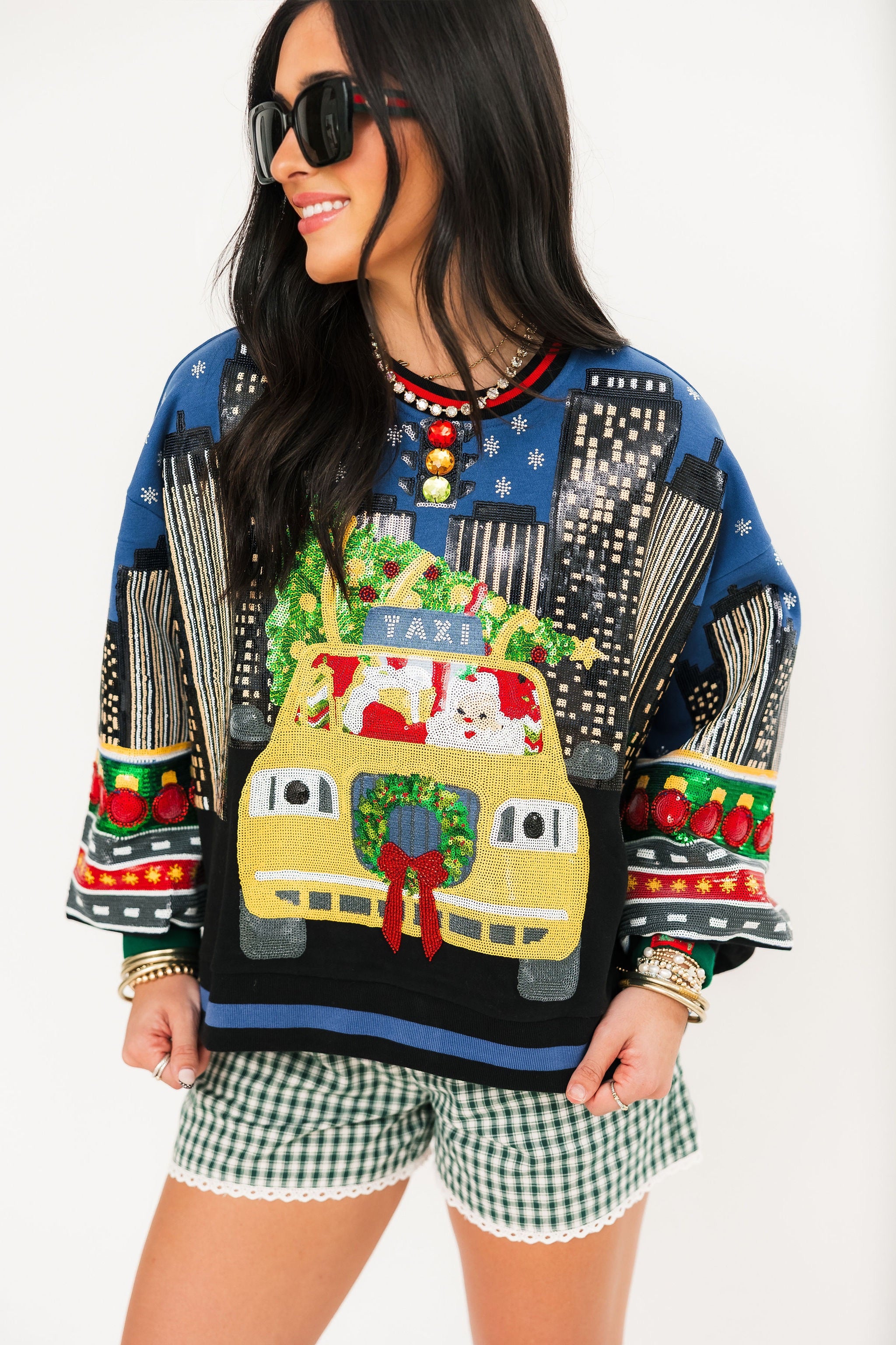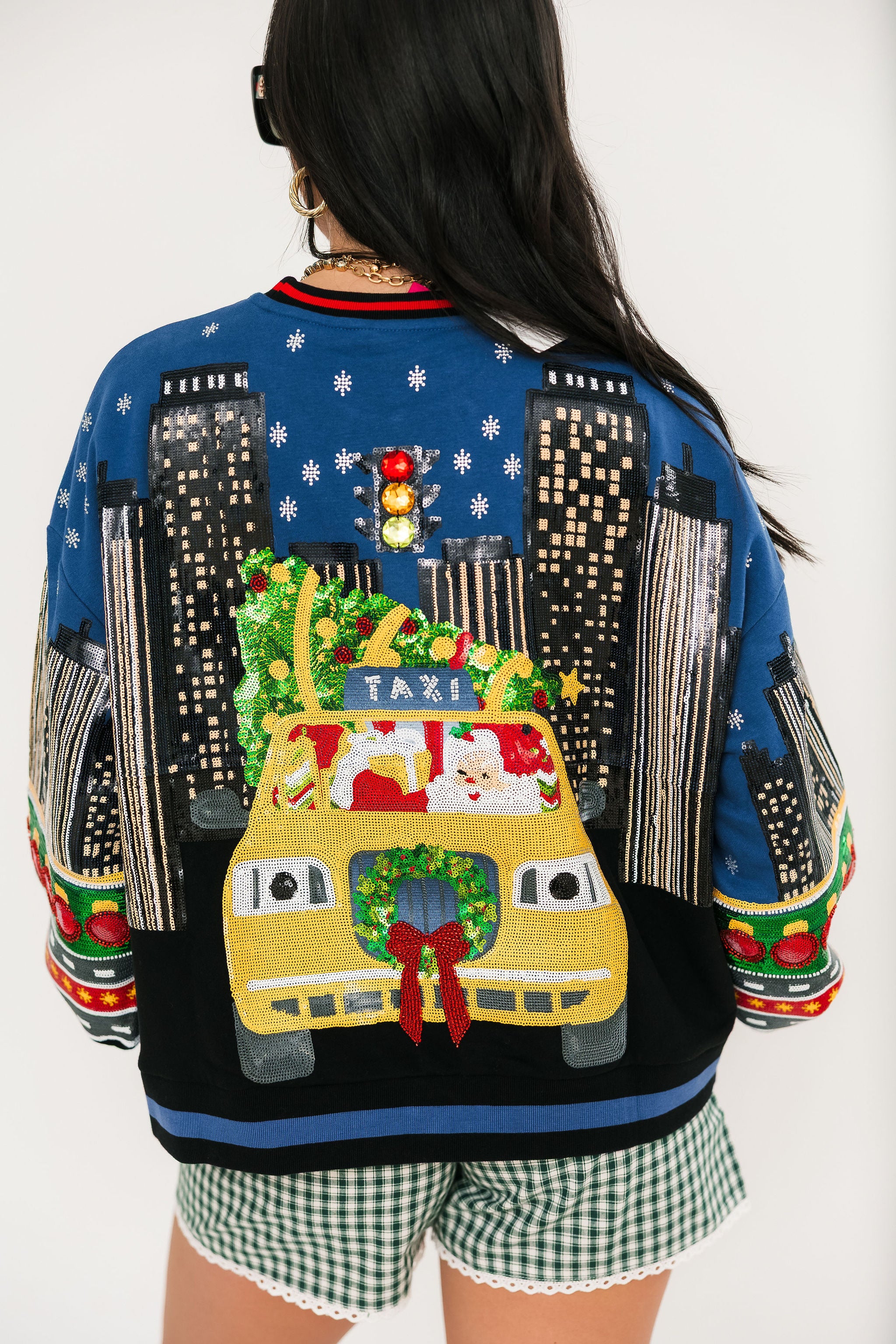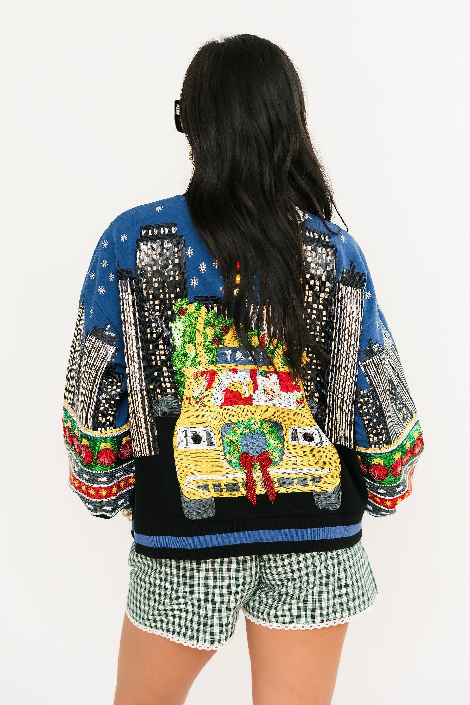 Queen Of Sparkles Christmas Taxi NYC Scene Sweatshirt