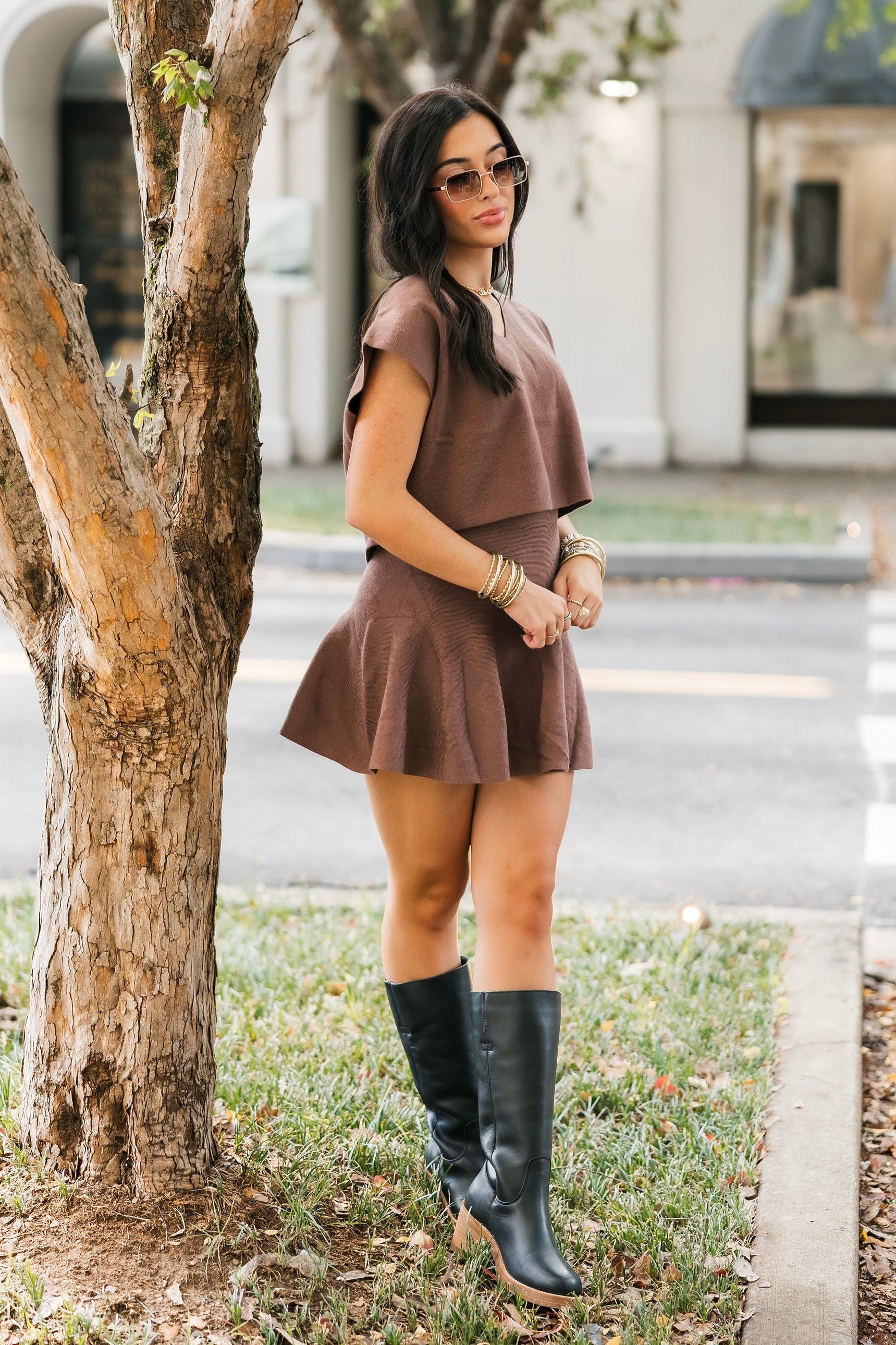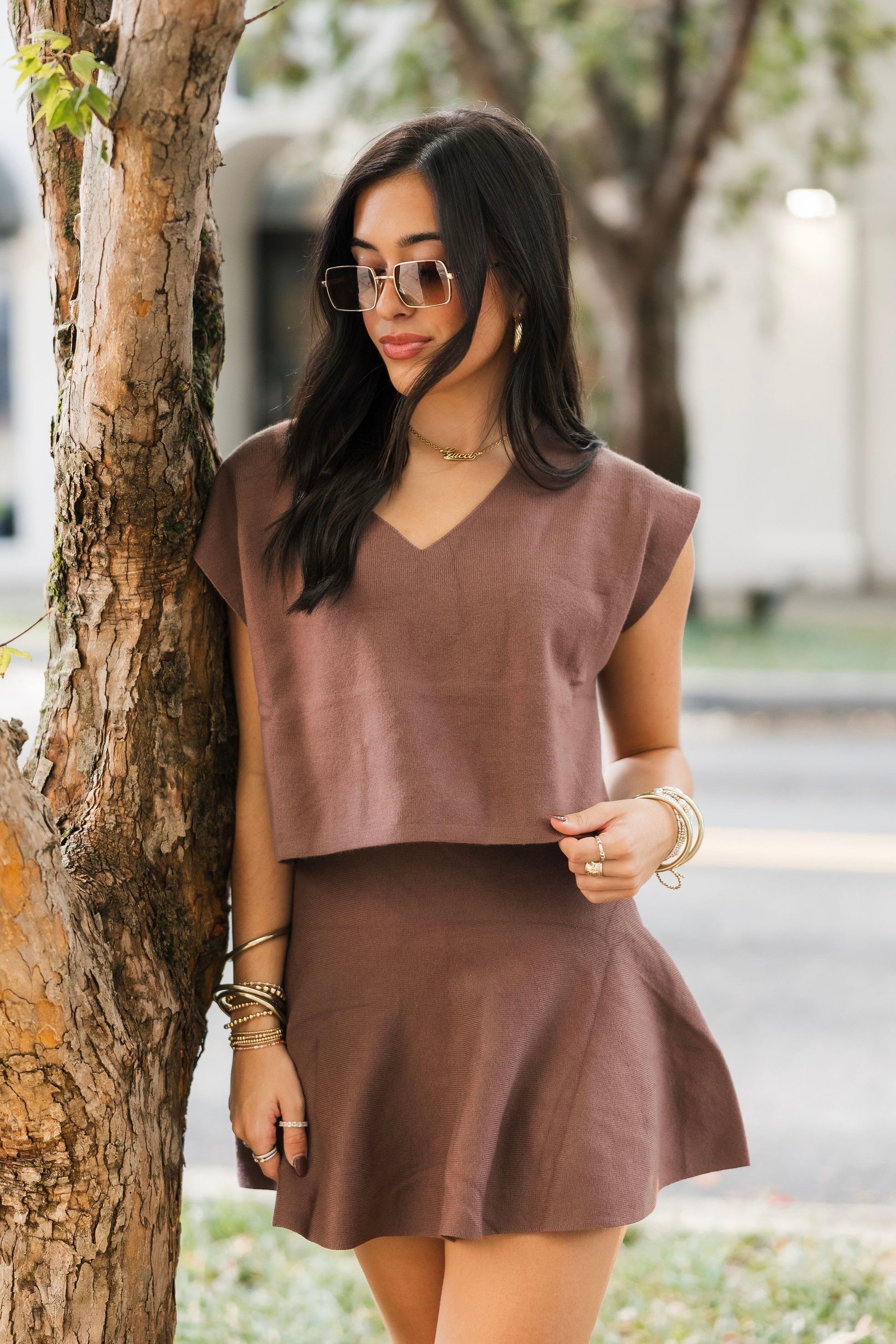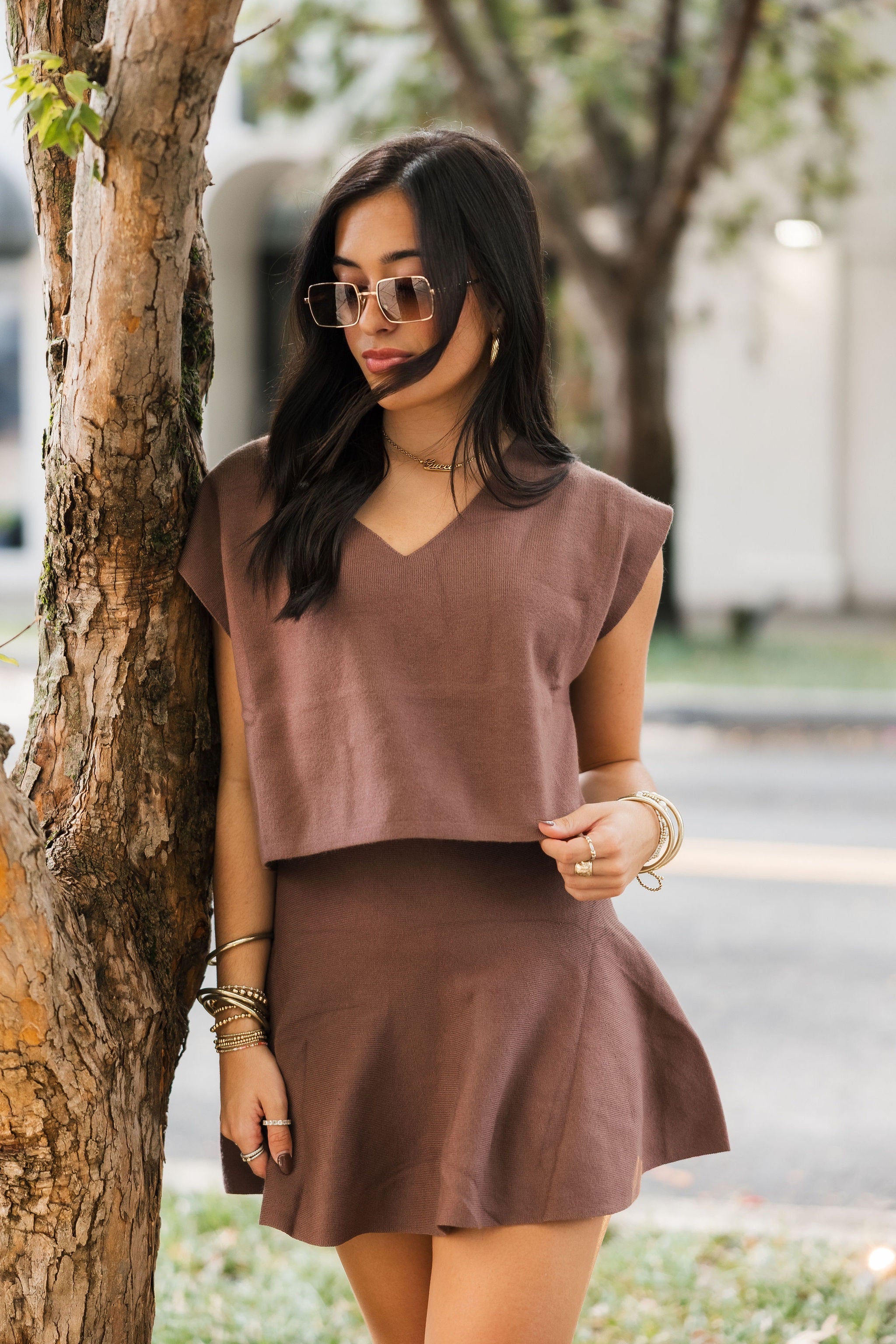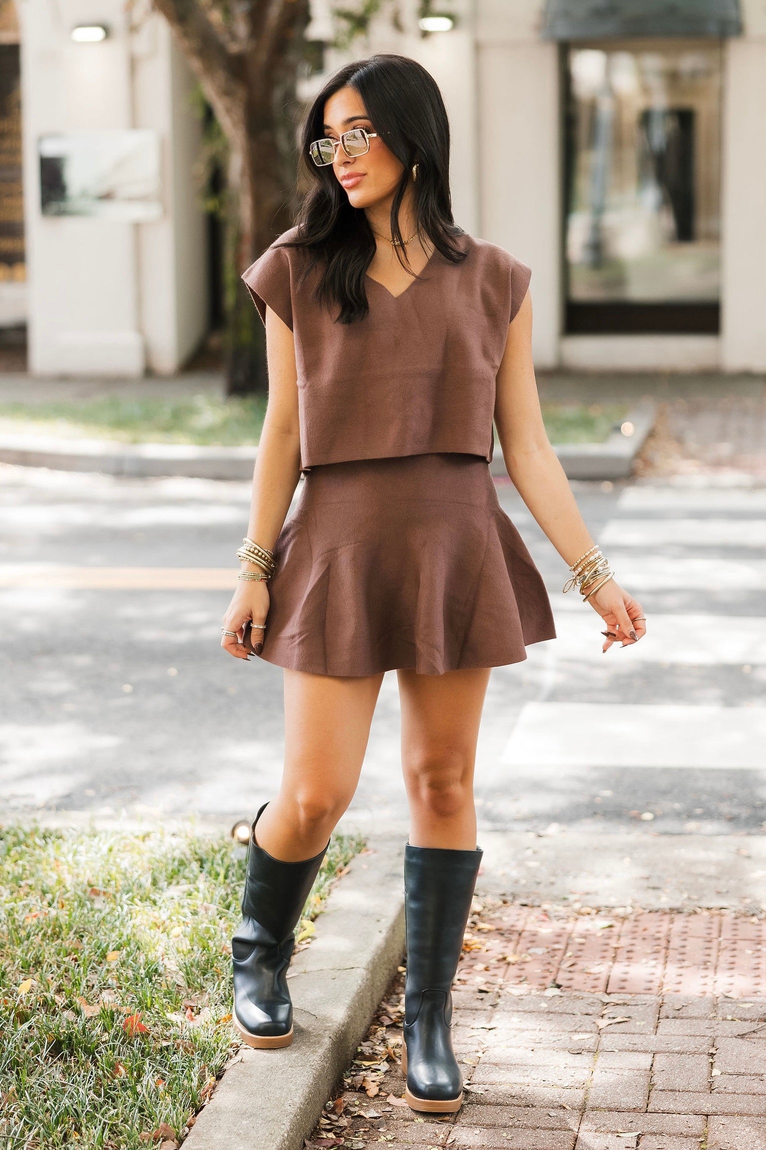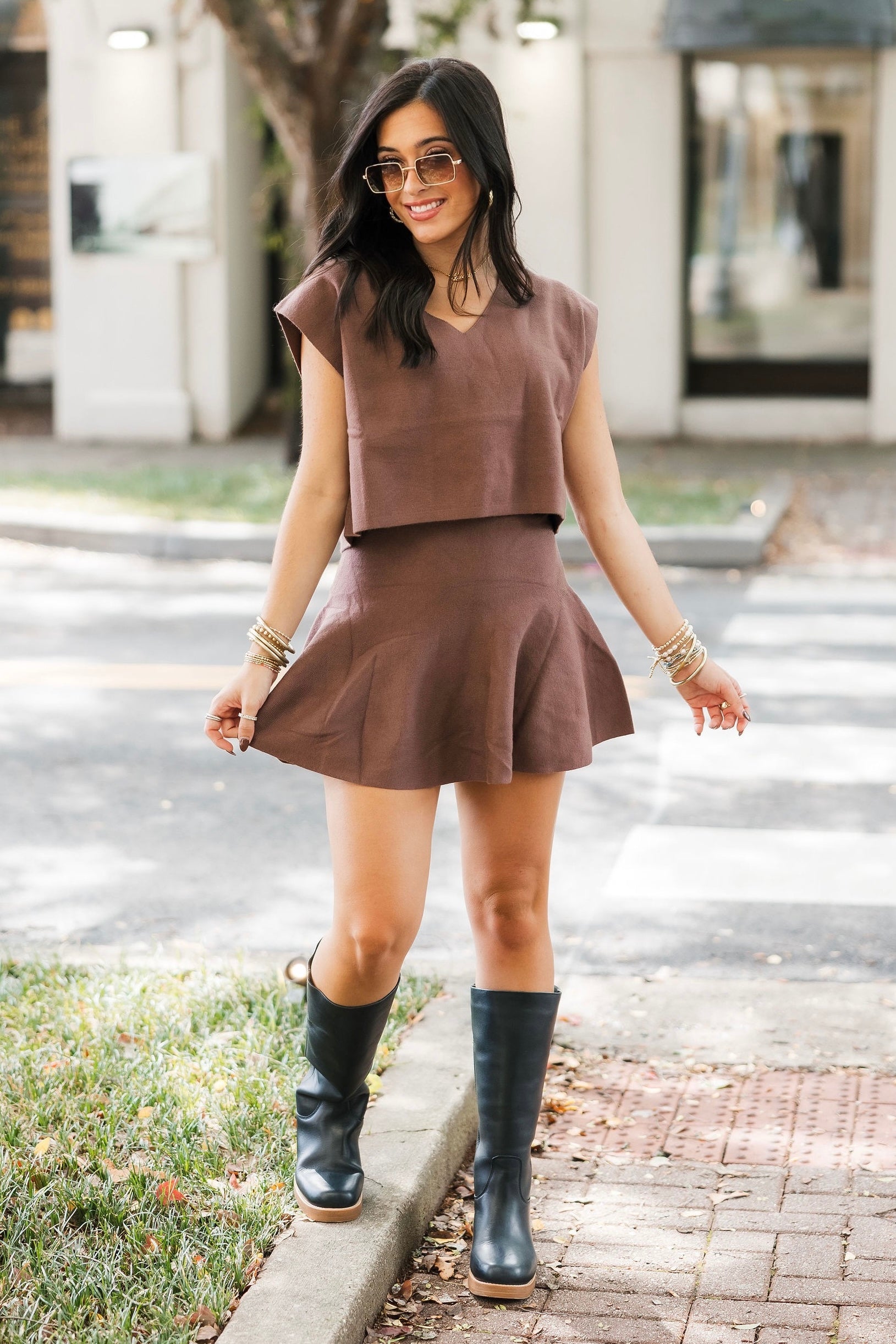 - Why We ❤ It: A cozy knit and rich chestnut hue make this mini skirt a timeless wardrobe staple.