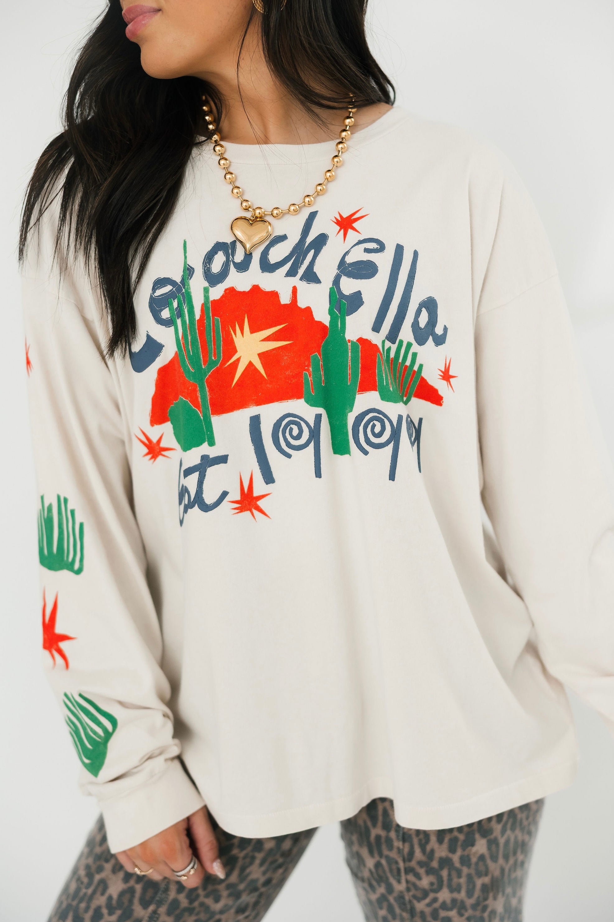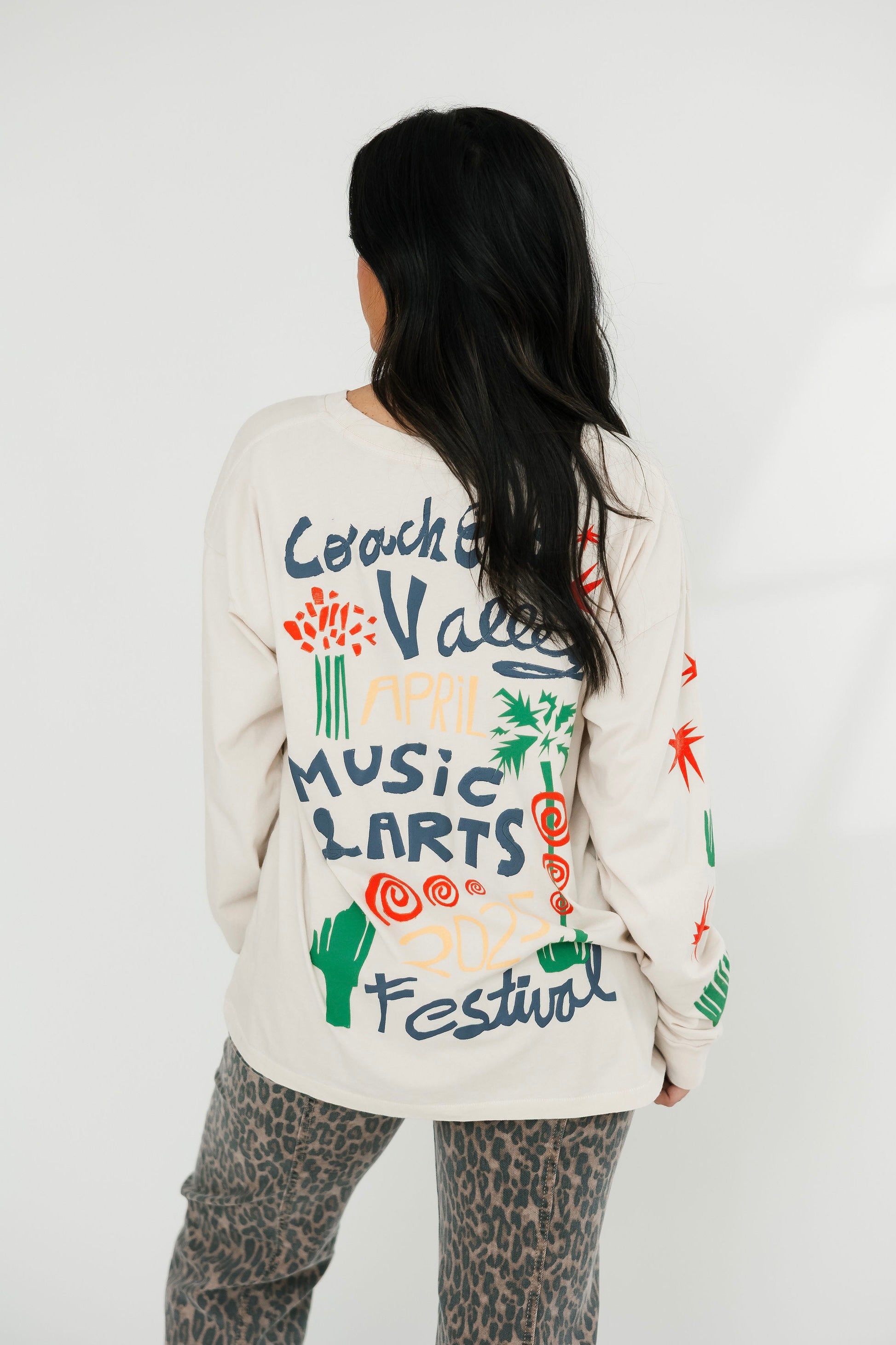 Daydreamer® x Coachella, where music happens. We are Coachella's first ever brand partner to present an assortment of styles for the 2025 season. Inspired by music culture and desert soundwaves, this Merch Long Sleeve is designed with a Coachella Valley Music and Arts Festival collage featuring Indio, CA iconography accented in puff ink. See you in the desert.