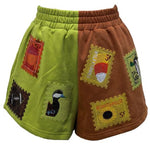 Celebrate fall in style with these relaxed, high-waisted shorts. Featuring an easy elastic waistband, colorblock green and brown panels, and playful stamp graphics including candy corn, pumpkins, sunflowers, and footballs, they’re perfect for adding seasonal charm to any outfit. Pair with a cozy sweatshirt or tee for an effortlessly festive look.