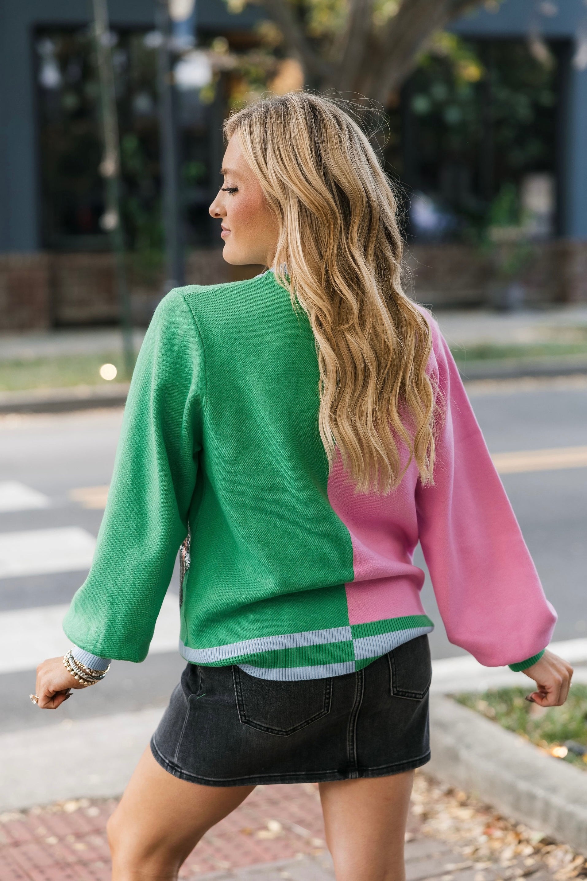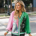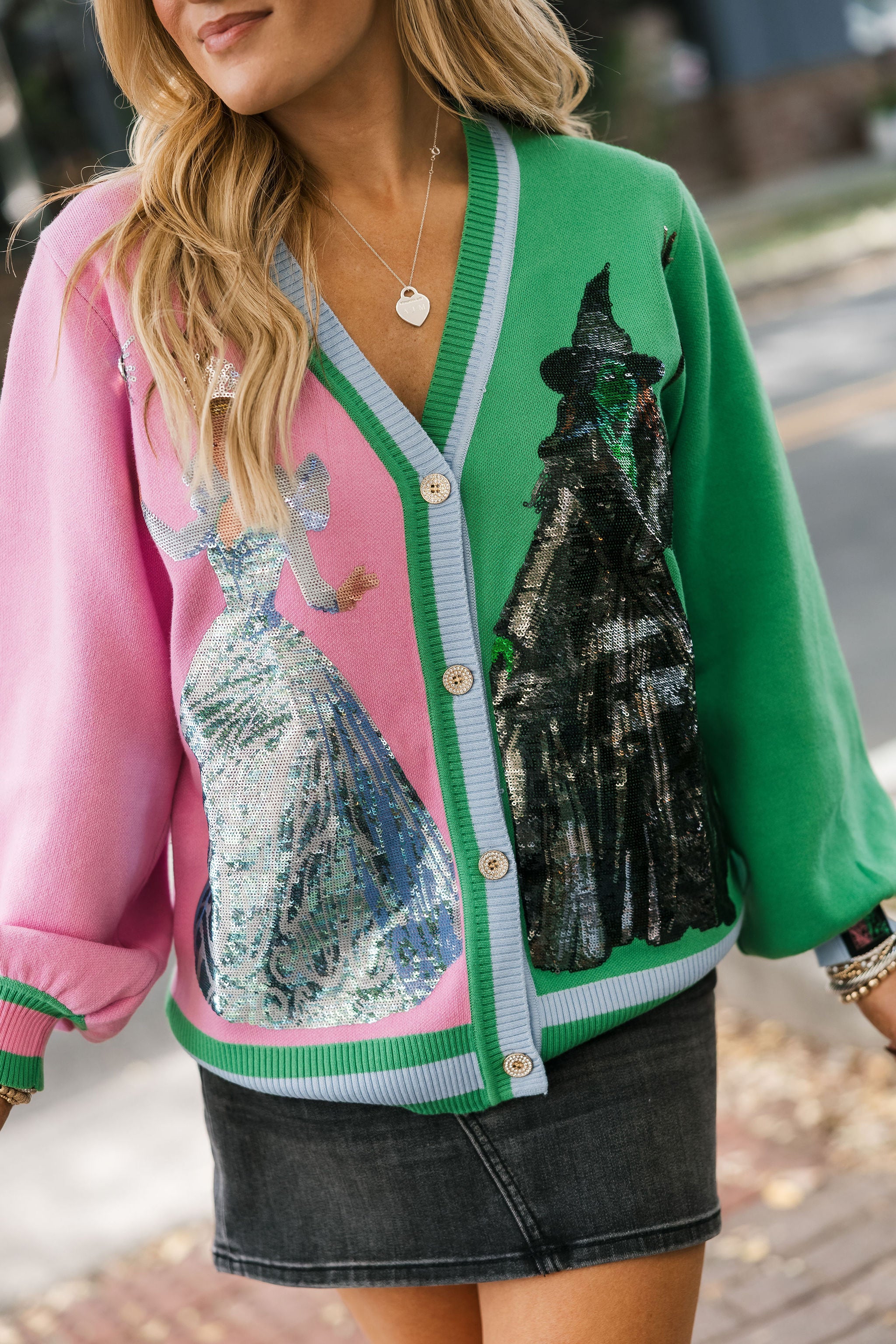 Licensed Colorblock Glinda & Elphaba Button Up Cardigan | Queen Of Sparkles