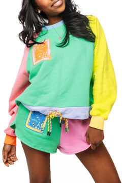 Colorblock QOS Logo Tie Short | Queen Of Sparkles