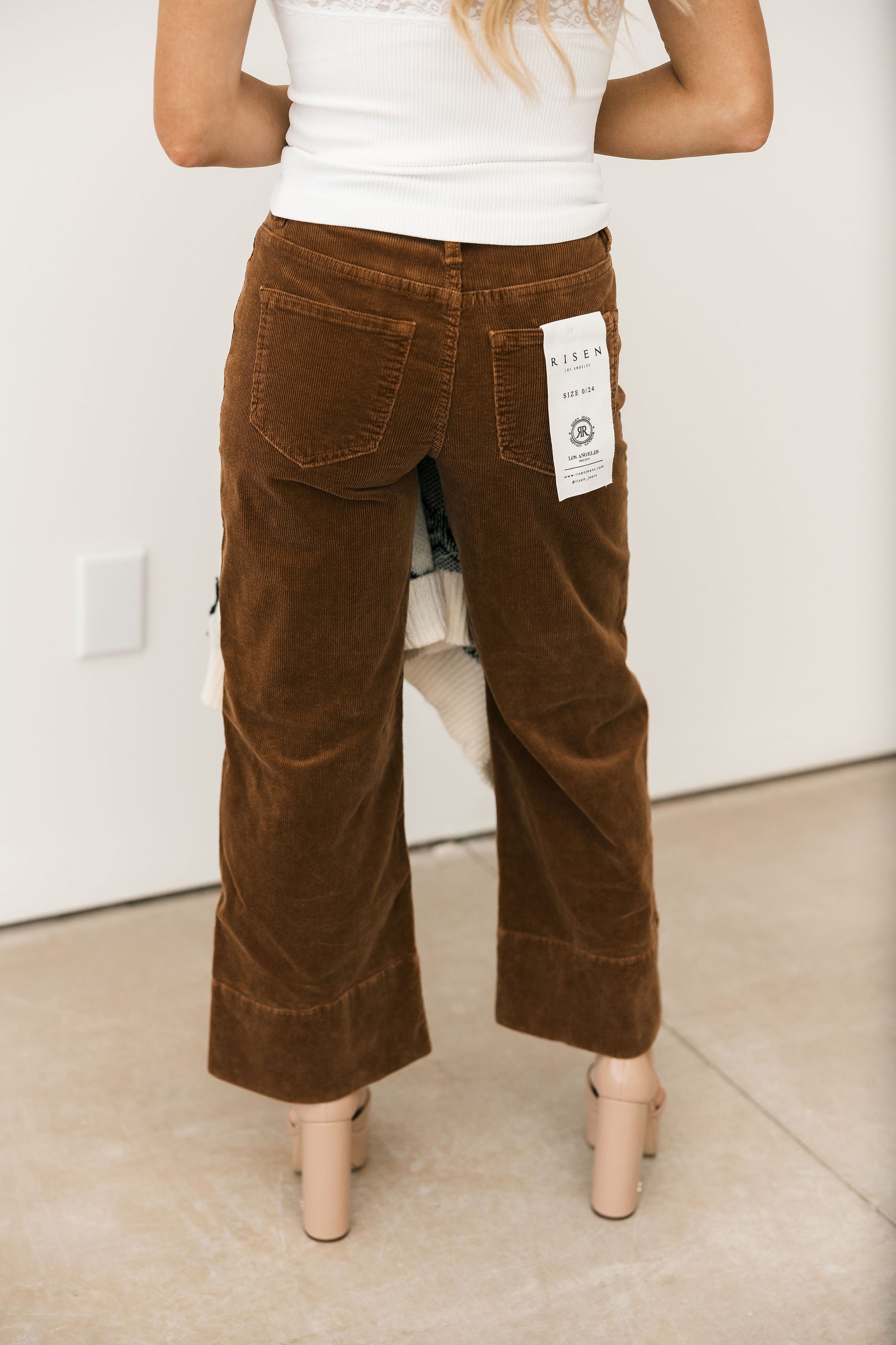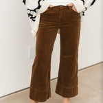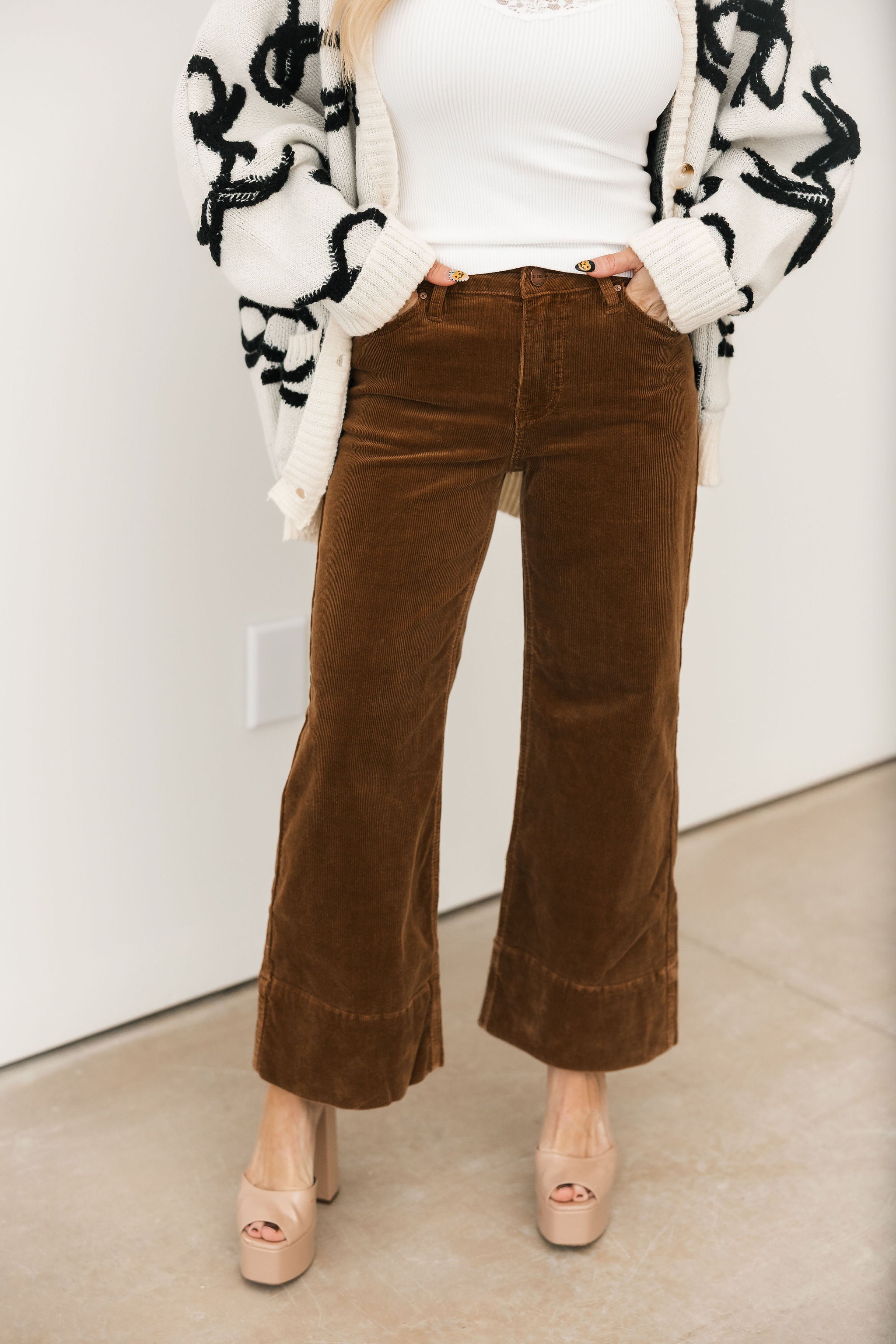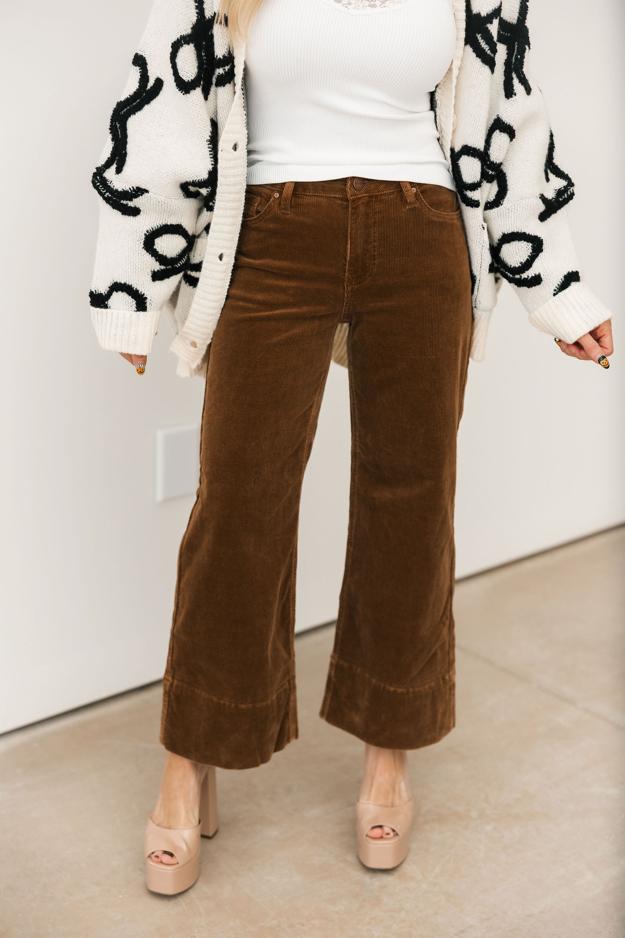 These wide-leg jeans feature a flattering high-rise waist and a soft corduroy texture that brings warmth and vintage-inspired charm. Finished with a cropped length for easy styling with boots or sneakers, they’re the perfect blend of comfy and chic for everyday wear.