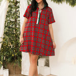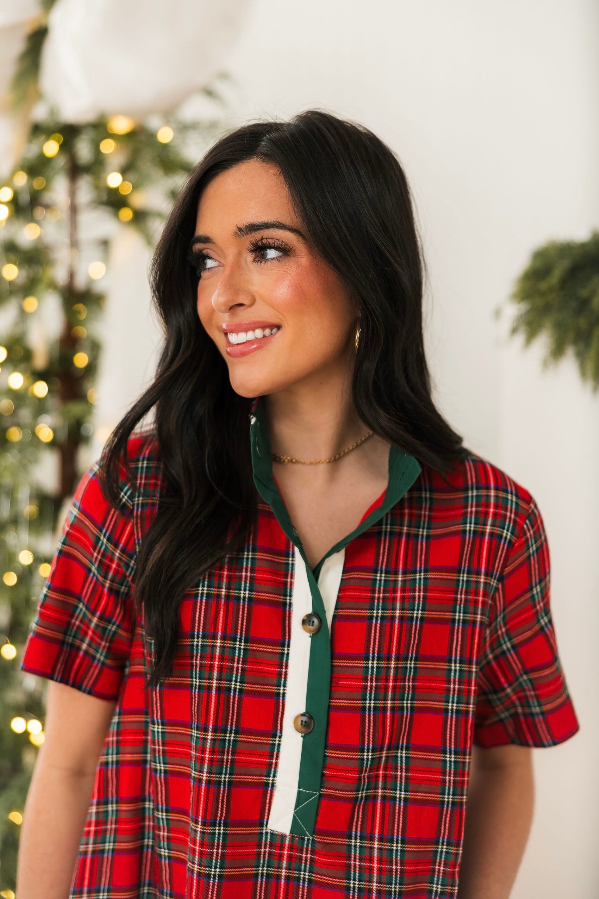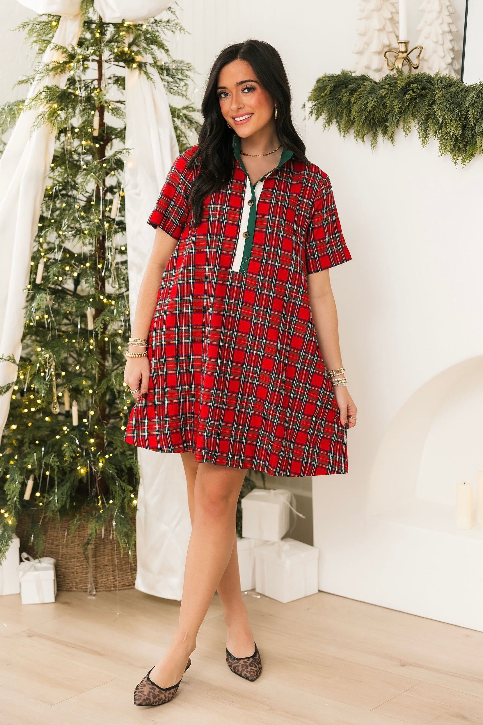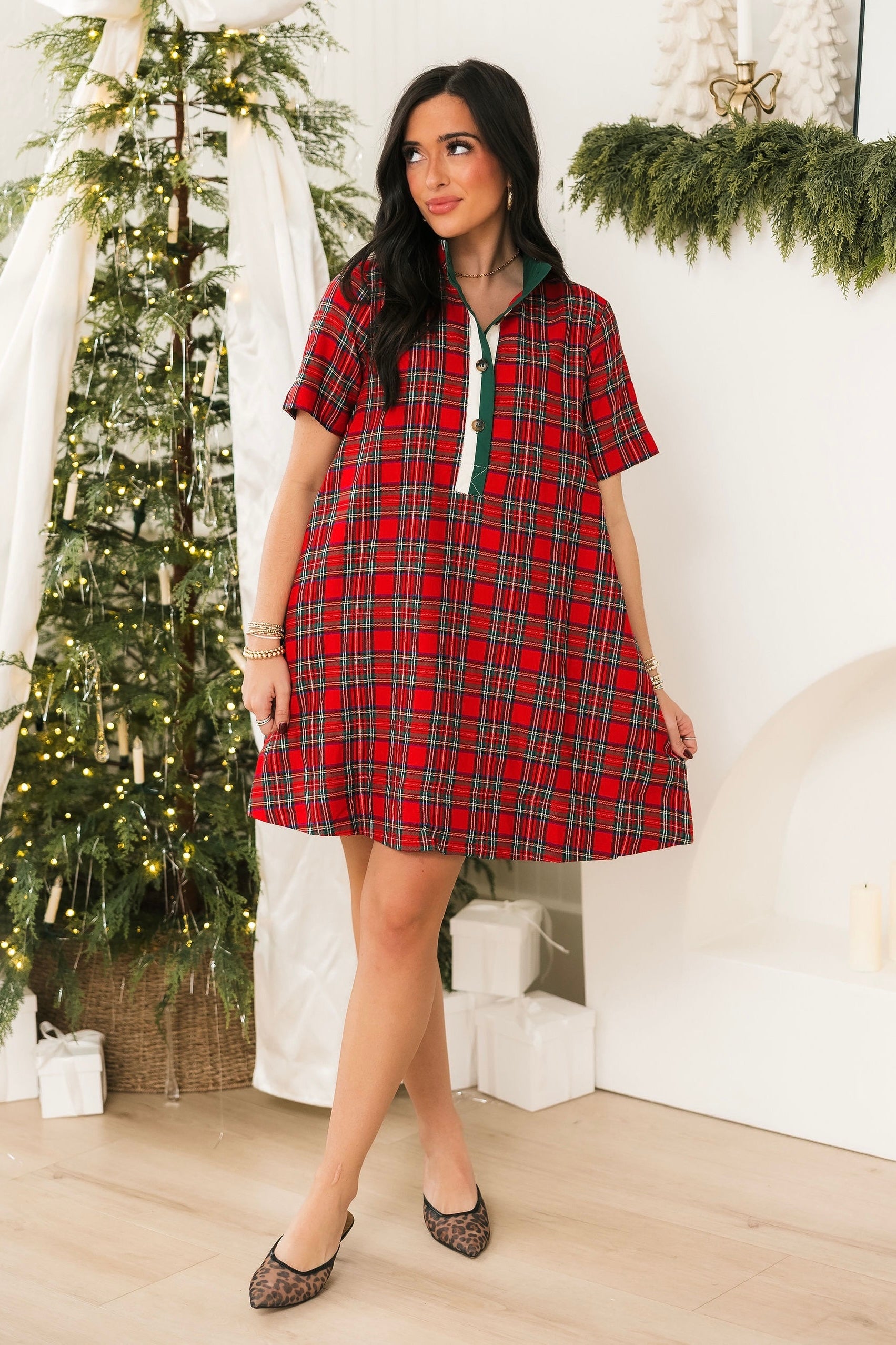 The Cozy Cabin Mini Dress in Red is the perfect blend of comfort and charm. With its relaxed fit, collared neckline, and soft plaid print, this mini makes everyday dressing feel effortlessly put-together. Side pockets add a practical touch you’ll love. Sage is wearing a small.