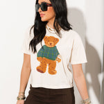 Cozy Plaid Bear Crop Tee