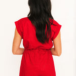 Turn heads with this sparkling crimson romper, perfect for Southern game day glam. Featuring a zip-up front and an adjustable drawstring waist to cinch your silhouette just right, it’s covered in shimmering rhinestones that catch every eye. Whether you’re cheering on Alabama or Arkansas, this romper brings comfy stretch and standout style to every tailgate and celebration. Sage is wearing a small.