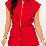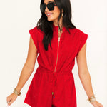 Crimson Rhinestone Zip Up Romper | Queen Of Sparkles