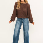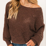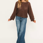 The Crochet Slouchy Sweater In Chocolate features a relaxed, slouchy fit with a classic round neckline and long sleeves. Designed in a soft crochet knit, it offers the perfect mix of texture and ease. Pair it with denim cutoffs for a casual weekend vibe or layer over a slip skirt for an elevated, relaxed look. Lexi is wearing a small.
