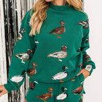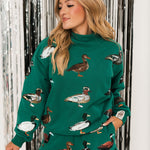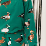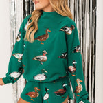 Add a playful twist to your fall wardrobe with these relaxed-fit, high-rise shorts. Designed with a comfy elastic waistband and adorned with glittery duck graphics, they’re perfect for pairing with sweaters, tees, or the matching cardigan for a fun, coordinated look. Lexi is wearing an XS.