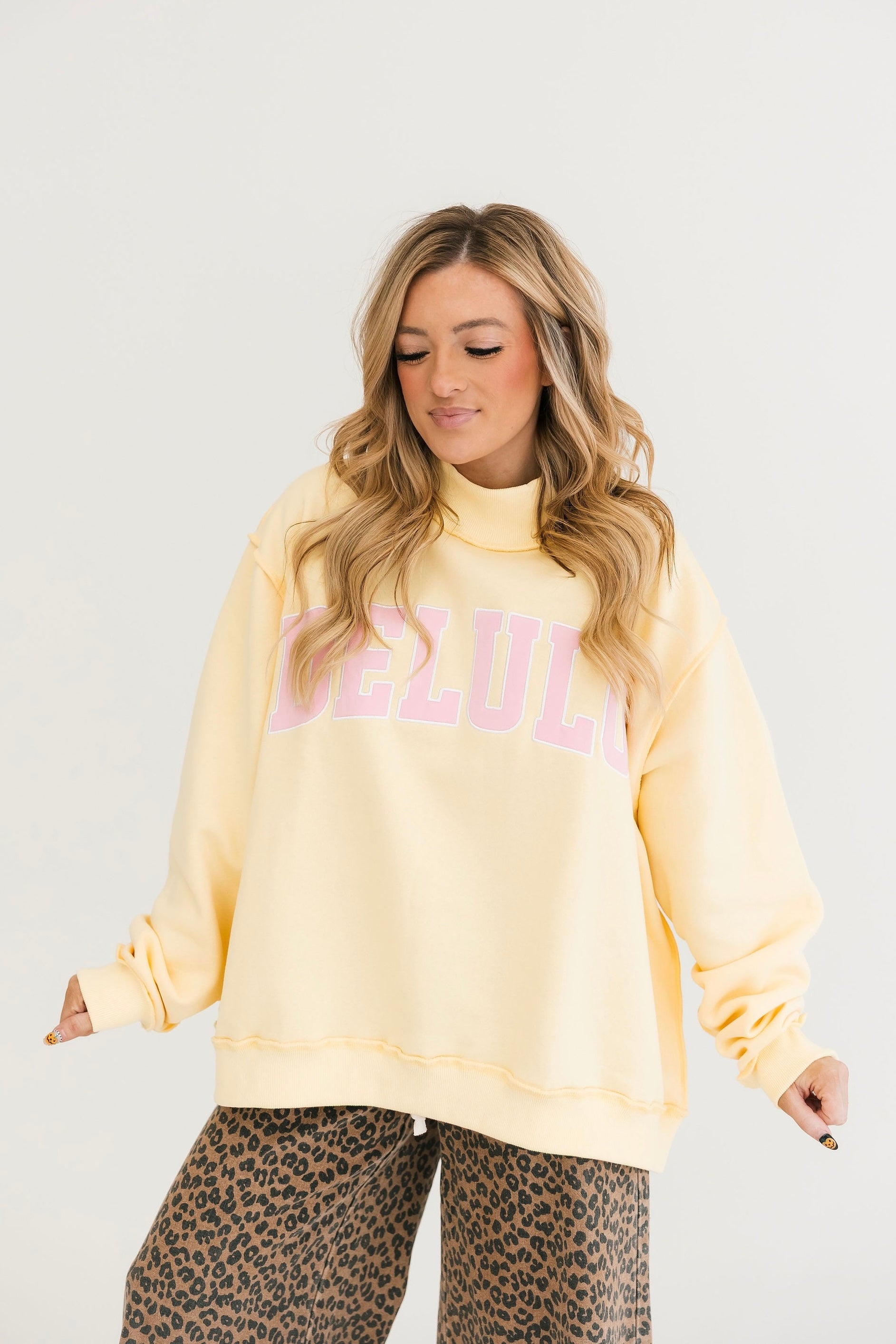 'Delulu' Embroidered Mock Neck Sweatshirt | Butter