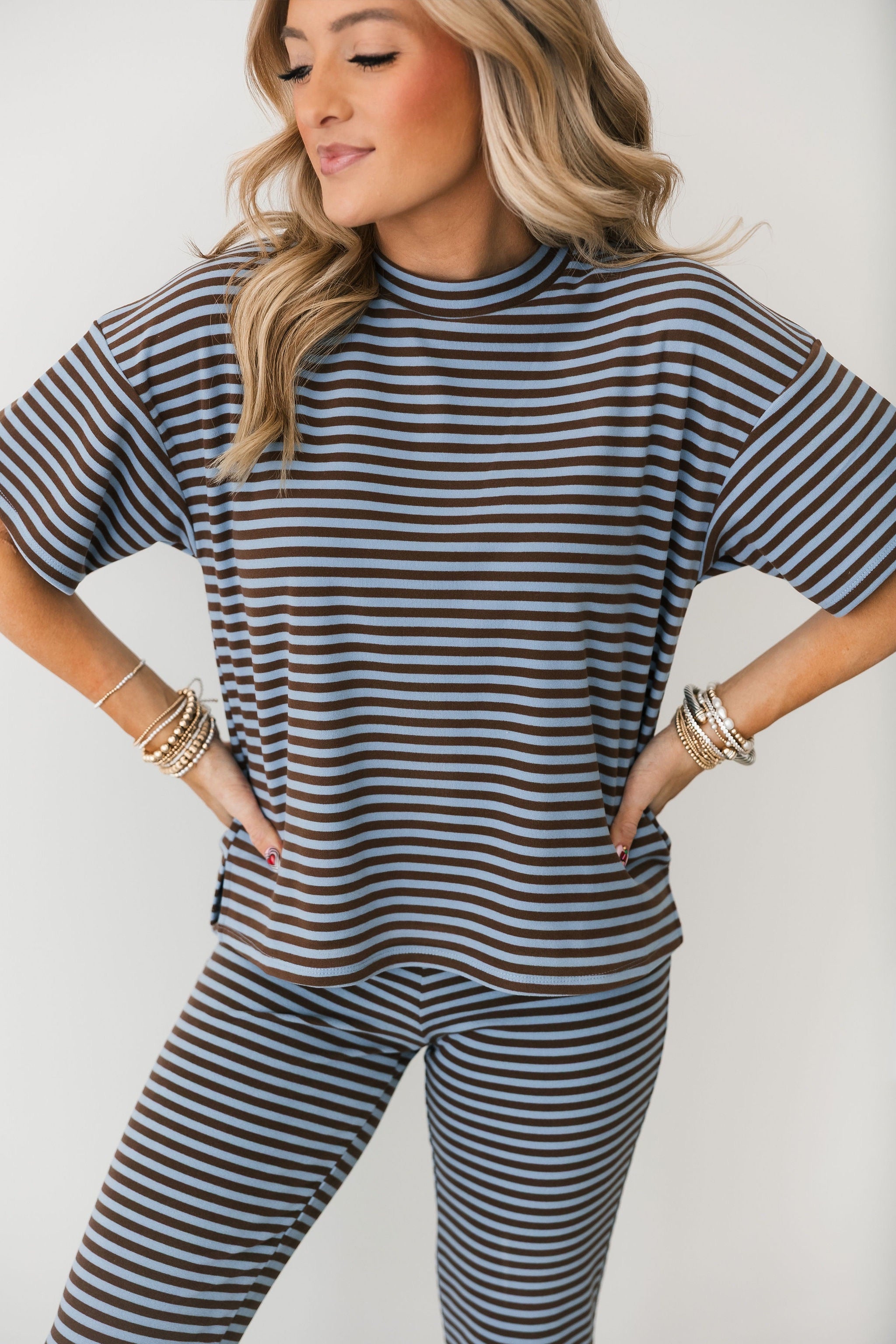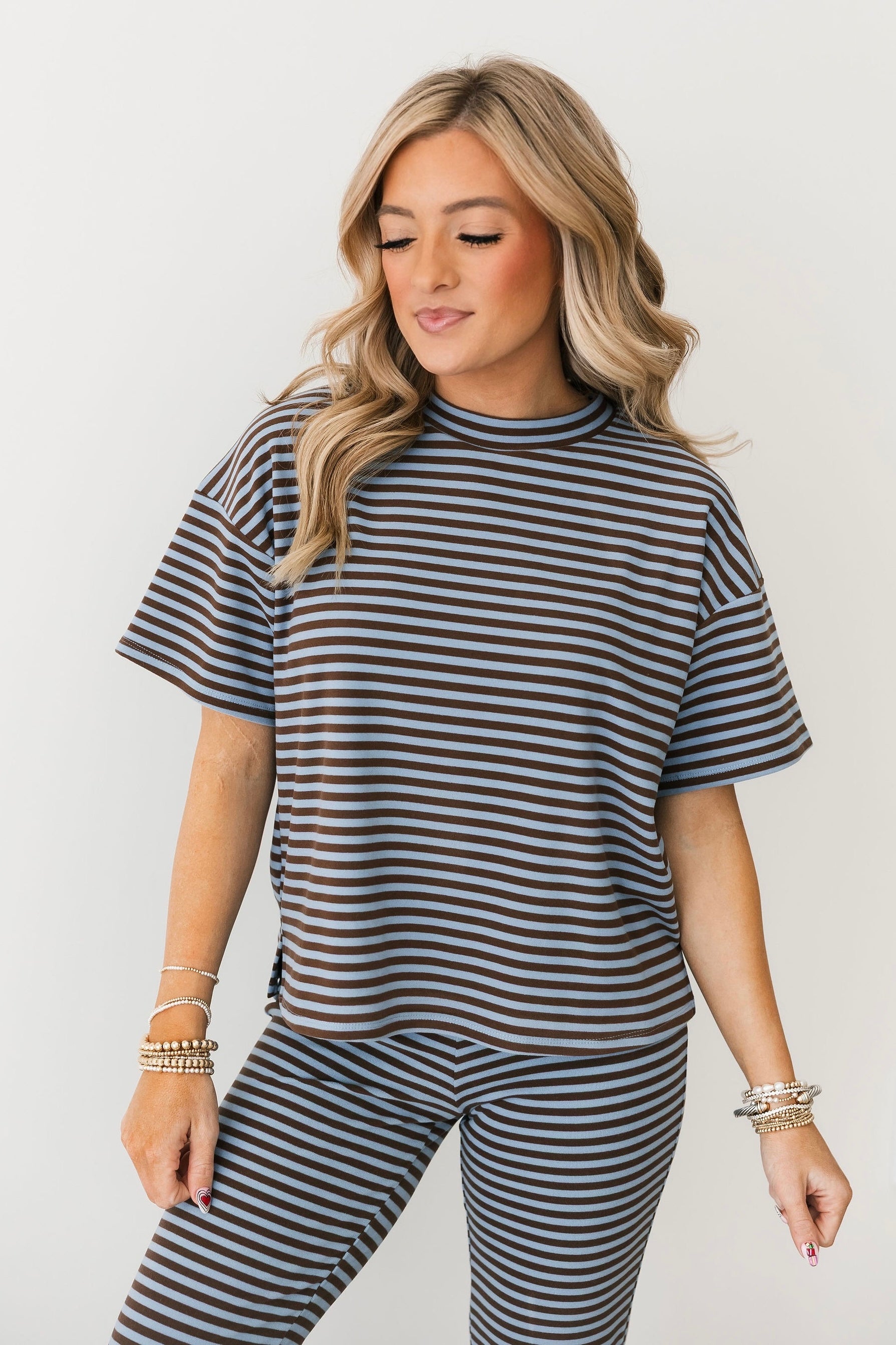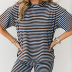 The Denver Top features a relaxed fit with a classic crewneck and short sleeves. Ultra-soft fabric makes it perfect for pairing with the matching pants or mixing into your everyday wardrobe. Whether you’re curled up with a book, running errands, or meeting friends for coffee, this pullover brings casual, cozy vibe to every moment. Lexi is wearing a small.