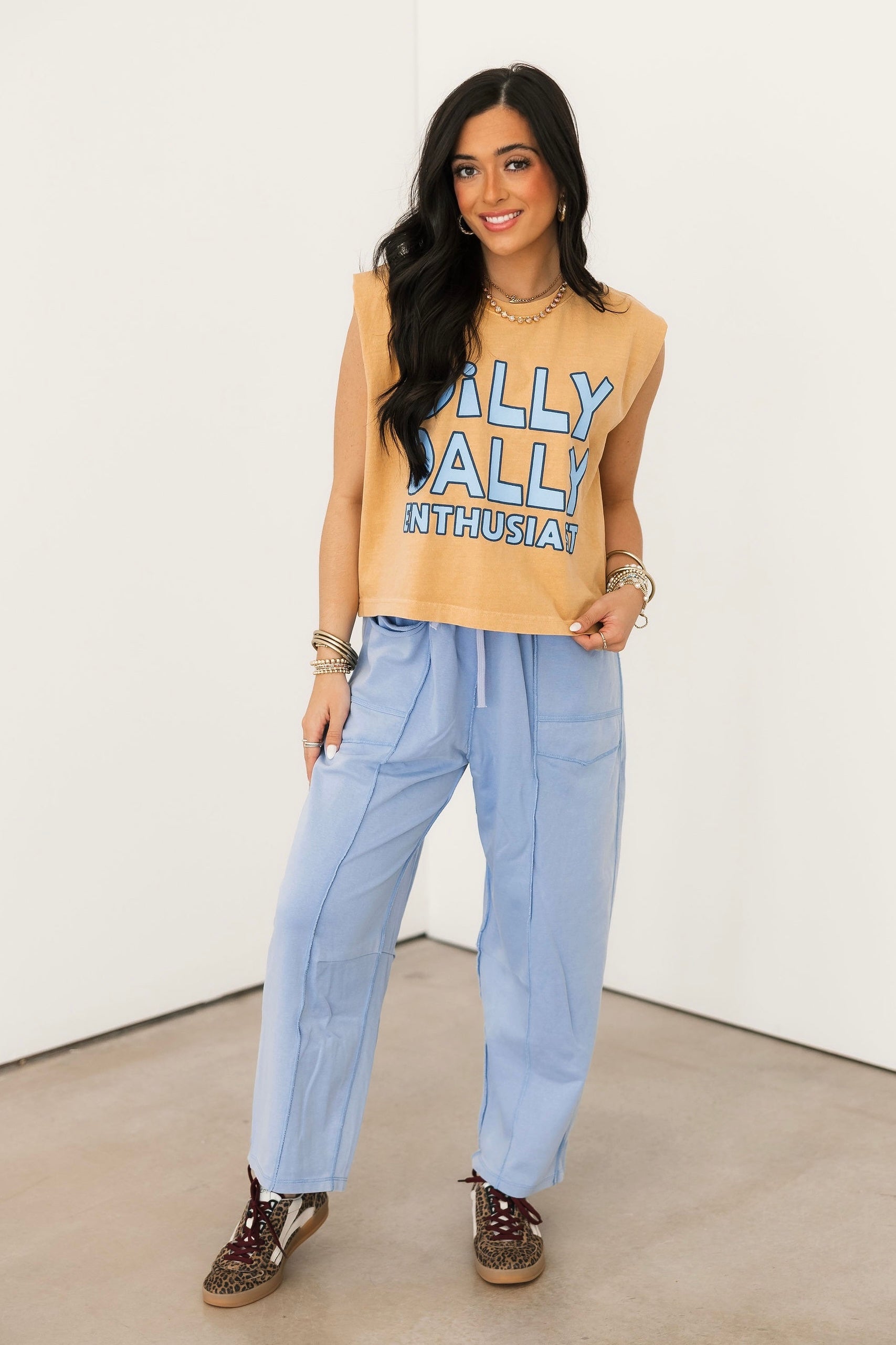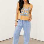 Playful, relaxed, and made for easy days — this muscle tank brings a little personality to your everyday lineup. Designed with a boxy, relaxed fit, it features a classic crew neckline and sleeveless cut for that effortless, laid-back feel. Perfect for pairing with denim shorts, joggers, or layering under your favorite jacket for a casual-cool look. Sage is wearing a small. ✨