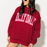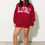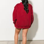 The Dilly Dally Pullover in Burgundy is made from the softest fleece for maximum comfort. Designed with an oversized fit, it features a mock neck, drop shoulders, and long sleeves for that relaxed look you love. Rib-banded cuffs and a ribbed hemline add a touch of structure while keeping things cozy. Pair it with leggings, joggers, or denim for an easy, everyday go-to. Sage is wearing a S/M.