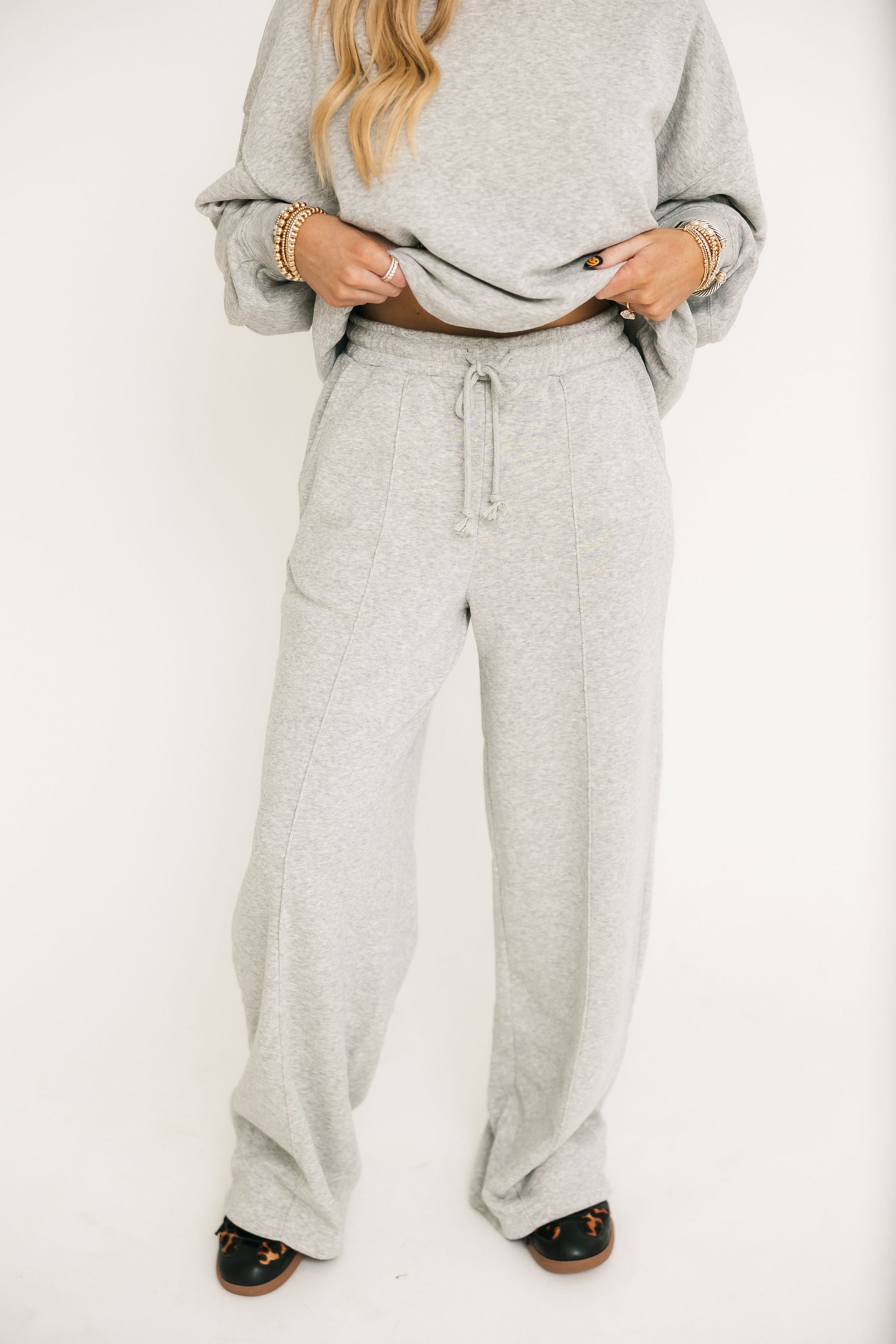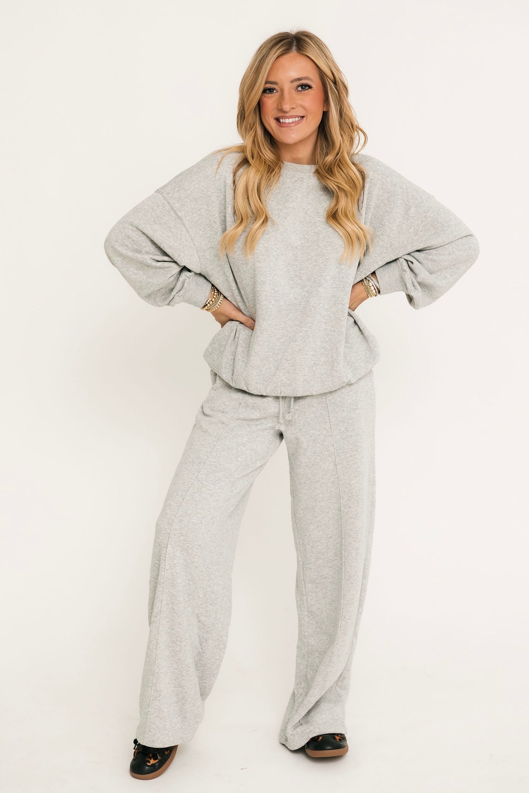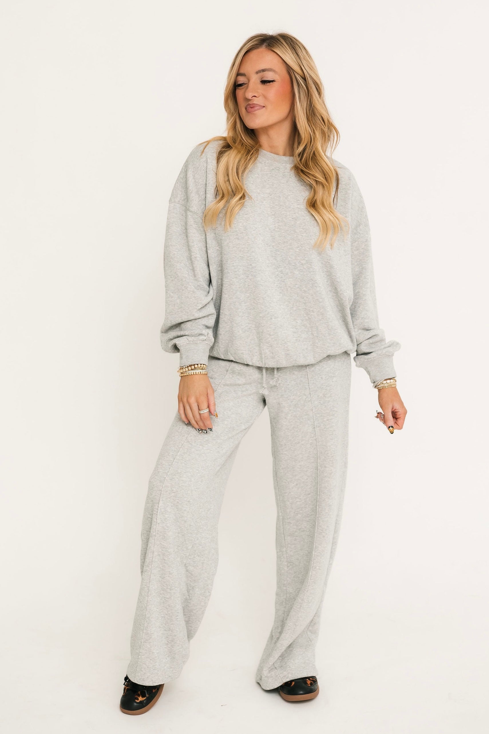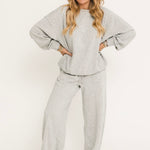 The Keeping It Casual Set is made for comfort without sacrificing style. Designed in a relaxed, oversized fit, the top features a classic crew neckline, dropped shoulders, and long sleeves for that laid-back feel. The matching pants include an elastic waistband, wide-leg silhouette, utility pockets, and subtle hem detailing for a polished finish. A go-to matching set you'll reach for again and again. Lexi is wearing a small.