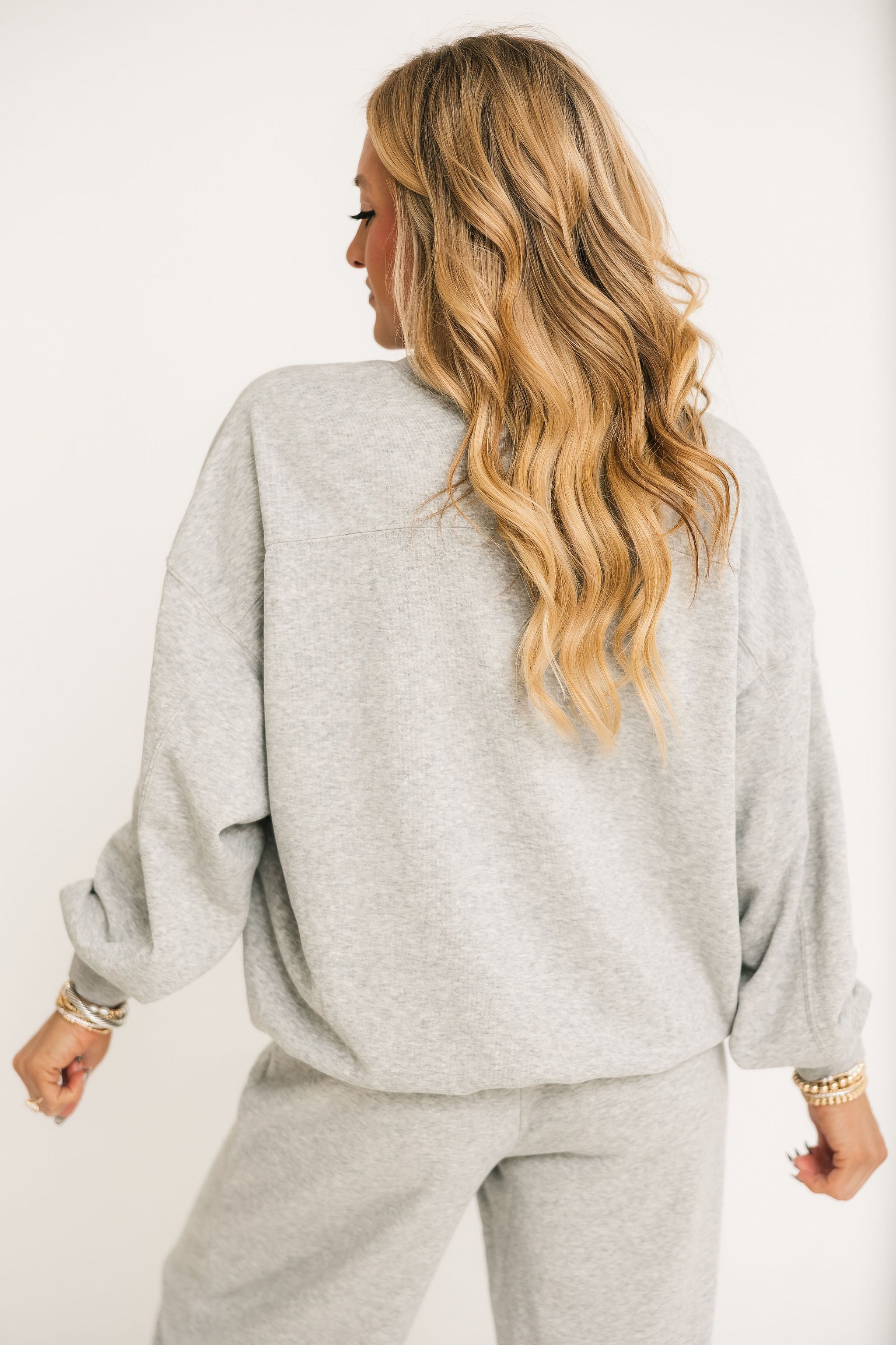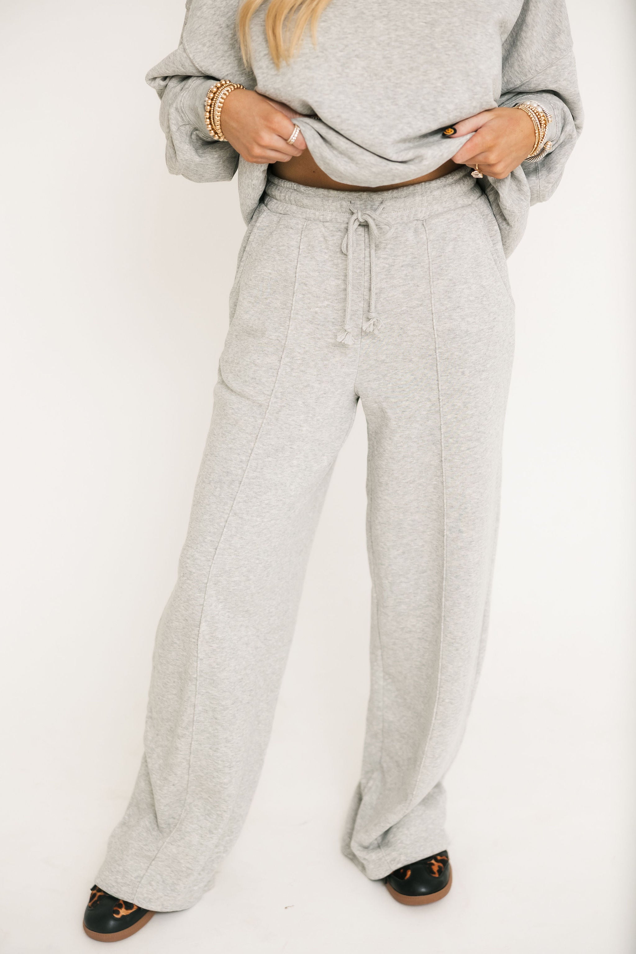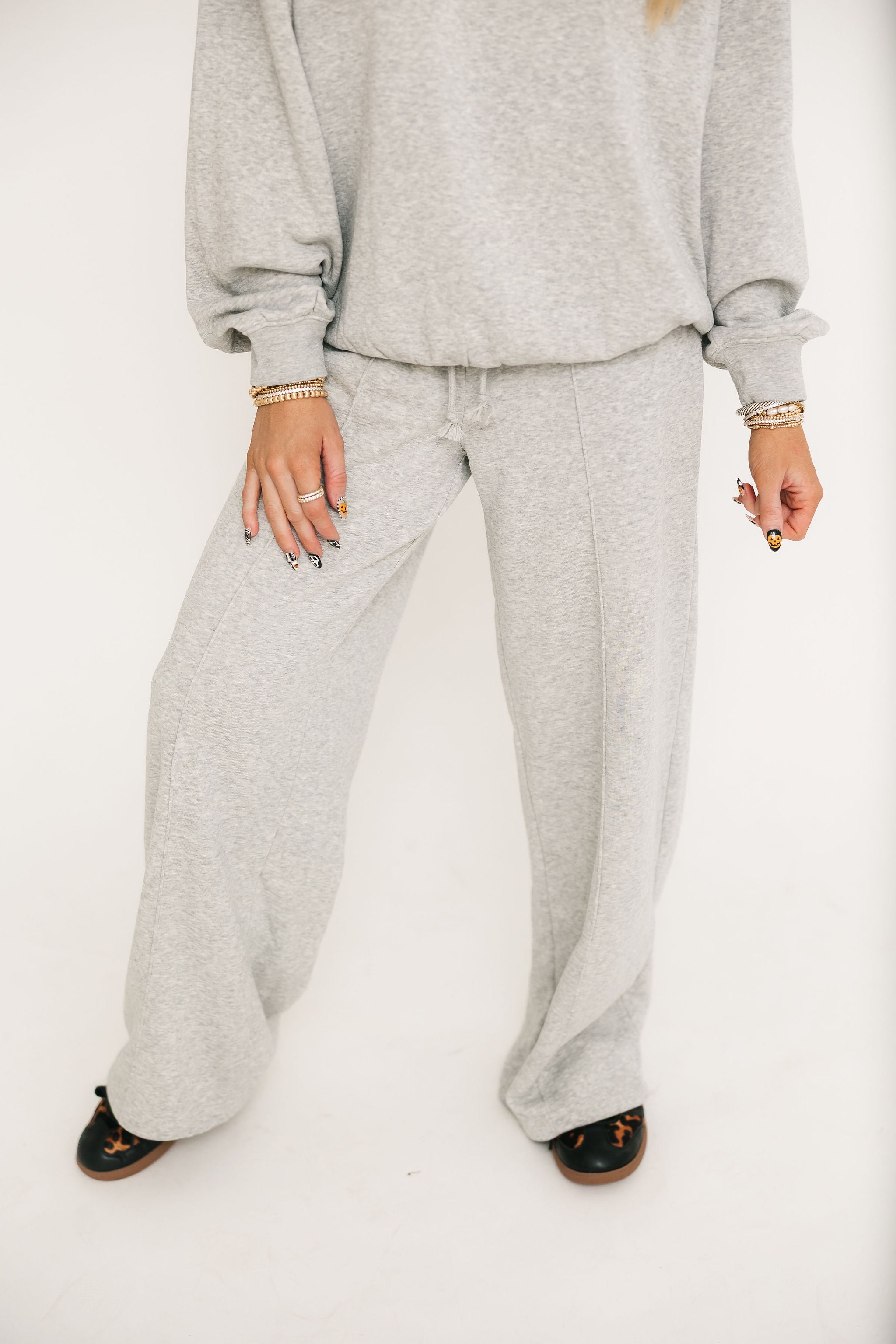 The Keeping It Casual Set is made for comfort without sacrificing style. Designed in a relaxed, oversized fit, the top features a classic crew neckline, dropped shoulders, and long sleeves for that laid-back feel. The matching pants include an elastic waistband, wide-leg silhouette, utility pockets, and subtle hem detailing for a polished finish. A go-to matching set you'll reach for again and again. Lexi is wearing a small.