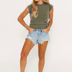 Your new favorite timeless tee from the We The Free collection, featured in a soft, ribbed knit fabrication and slim-fitting silhouette with raised seam detailing and cap-inspired sleeves. Lexi is wearing an xs.